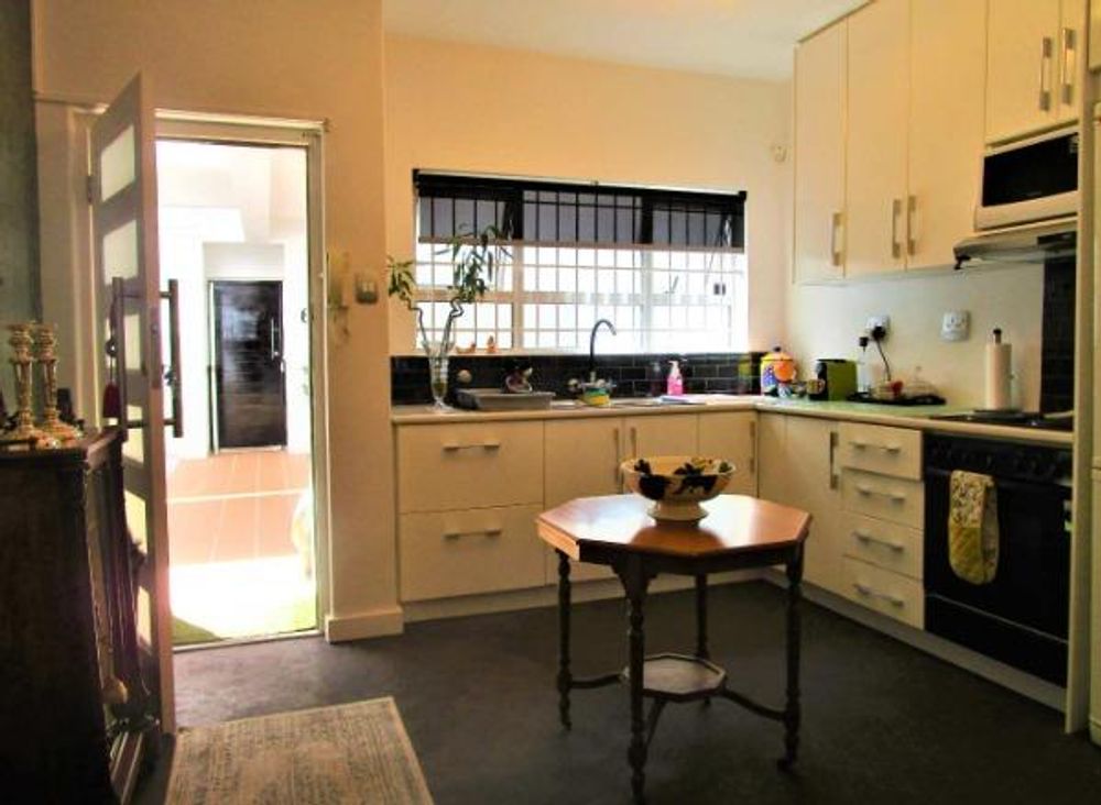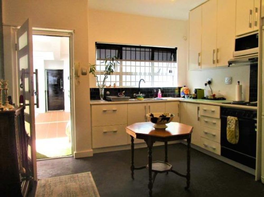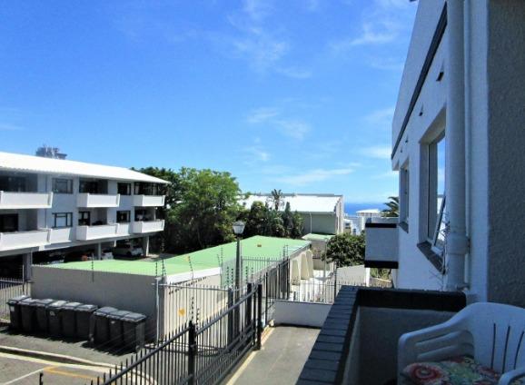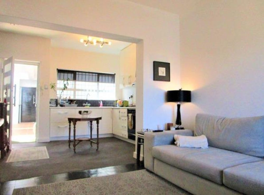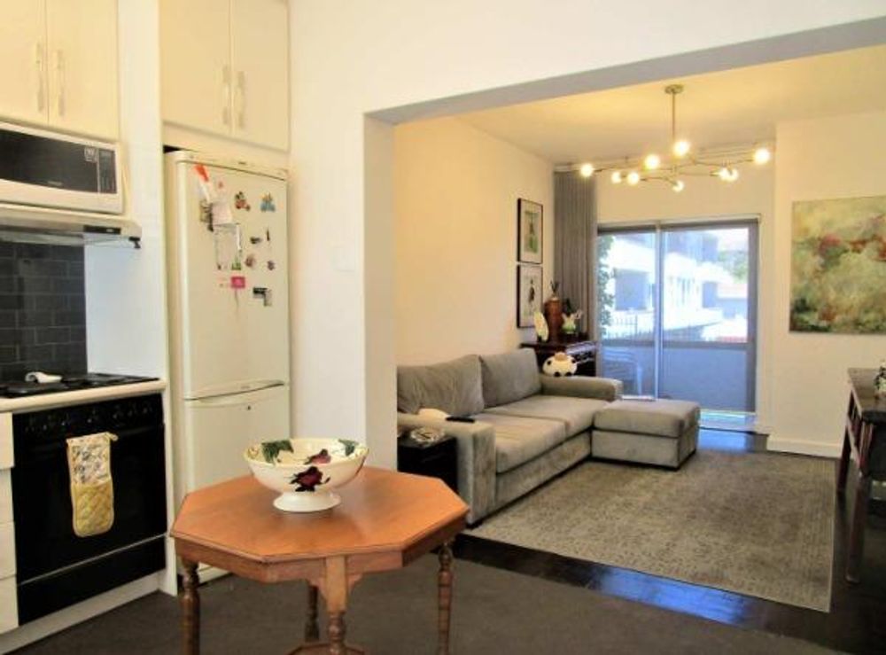 Open plan kitchen leading onto the living area and straight onto the balcony overlooking leafy Green Point with a glimpse or two of the ocean.