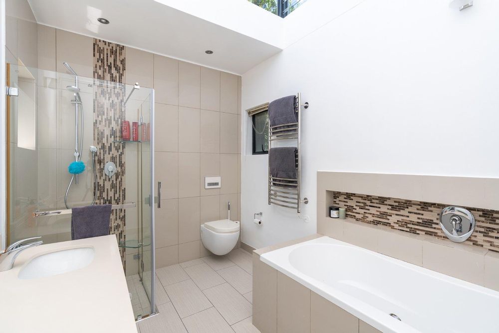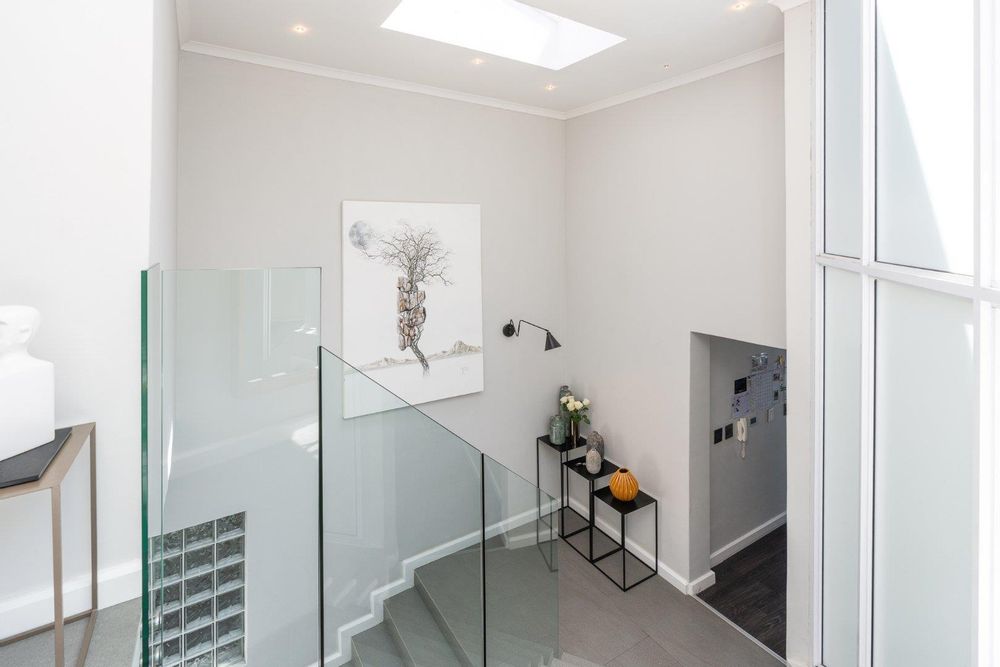 Ascending the stairs, the upper level presents four additional bedrooms, two of which have en-suites, as well as a full family bathroom. The main suite is a true retreat, offering privacy and luxury. It features a spacious dressing area, a private balcony, and a lavish en-suite bathroom complete with a bathtub and glass shower, creating the ultimate sanctuary.