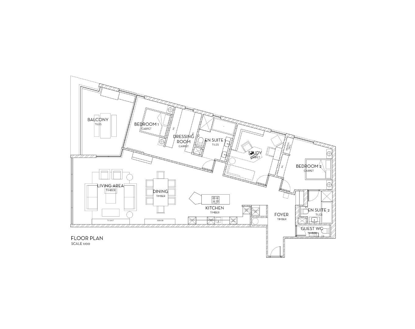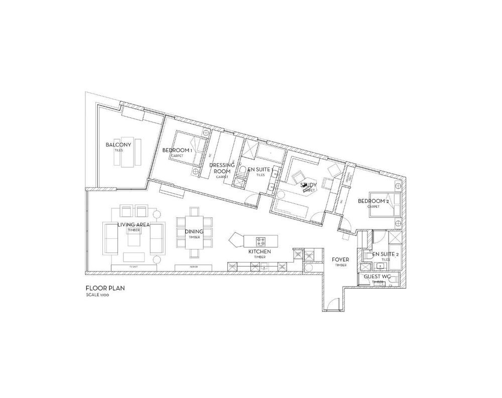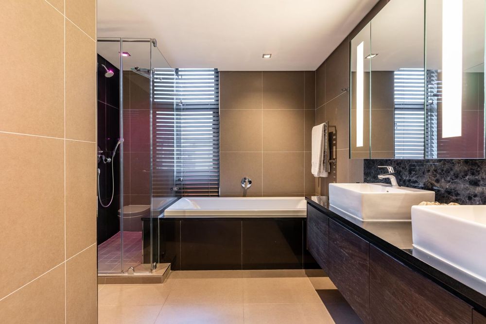 There are two generous en-suite bedrooms with quality finishes and lighting throughout, along with a third room currently used as a stylish study, easily adaptable to a third bedroom if required.