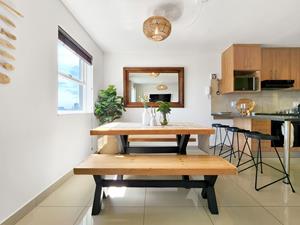 The apartment is bright with natural light, nestled in the serene upper Greenpoint, offering peace and privacy in one of Cape Towns most bustling neighborhoods.