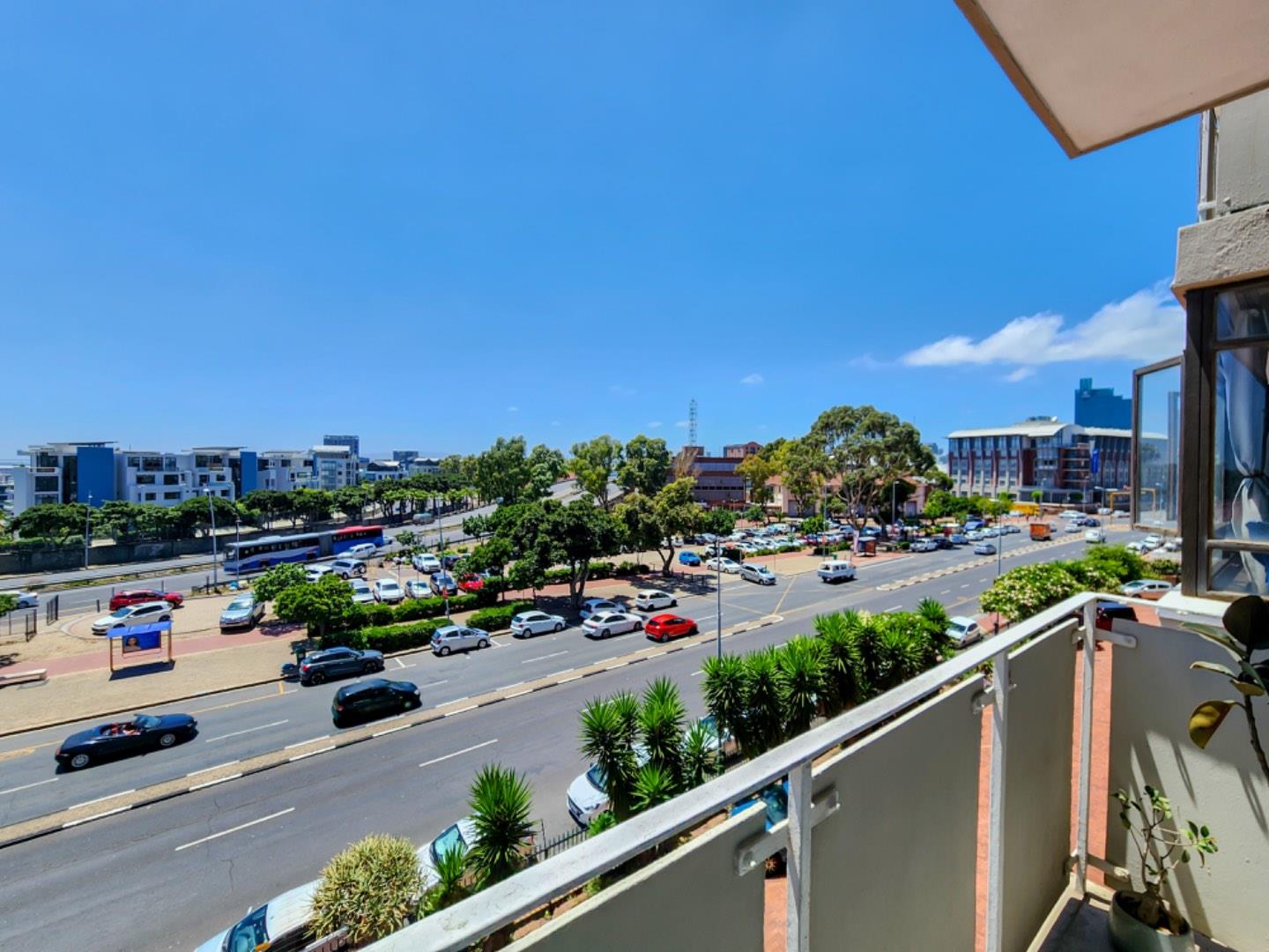 Step into the chic, open-plan kitchen, dining and living area, a haven for entertainers and those who appreciate natural light. Kitchen counter also serves as a bar counter with four barstools to remain. As a corner unit, the apartment is graced with windows all around, providing a breath taking backdrop for enjoying sunsets or soaking up sun on cooler winter days. Take advantage of the open balcony to relax and unwind with a sundowner after work, or to enjoy a coffee in the morning. The kitchen is thoughtfully designed with plumbing for two wet appliances and features a double sink for added convenience. Fridge, washing machine and dishwasher to remain.