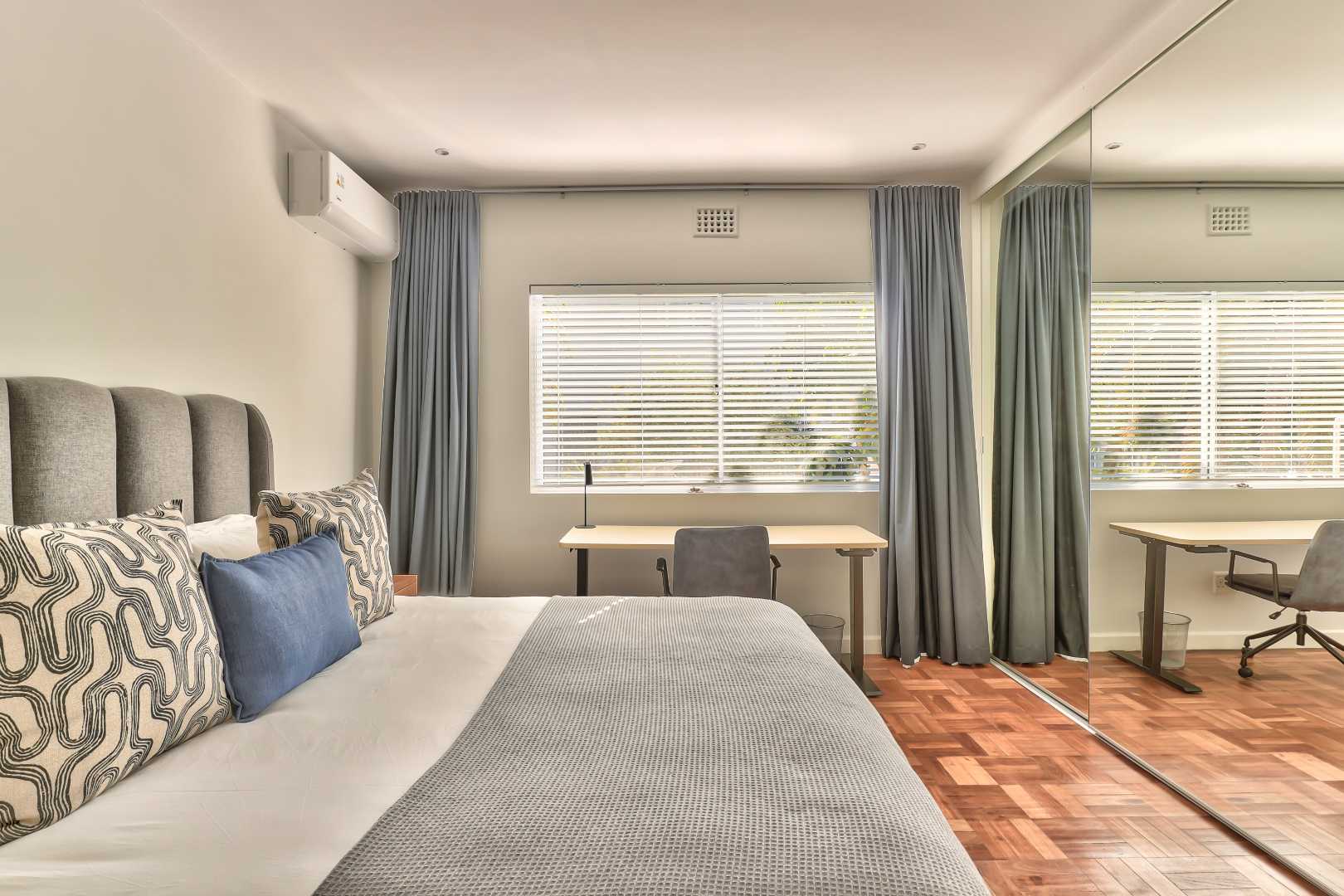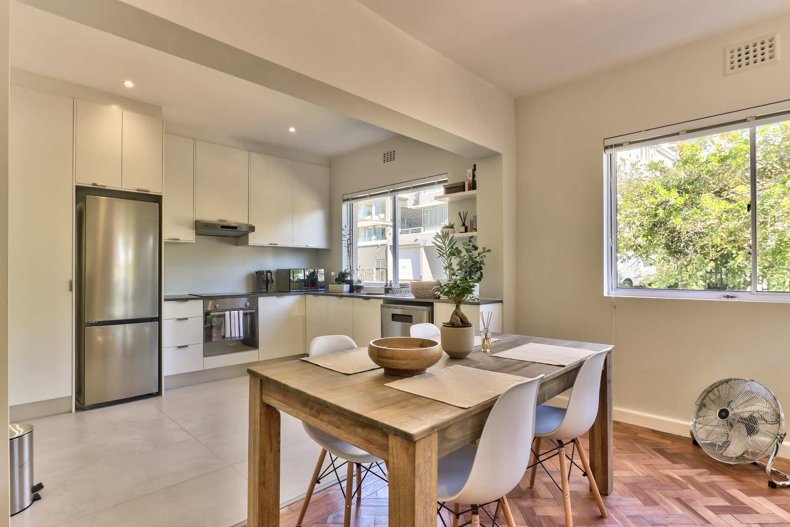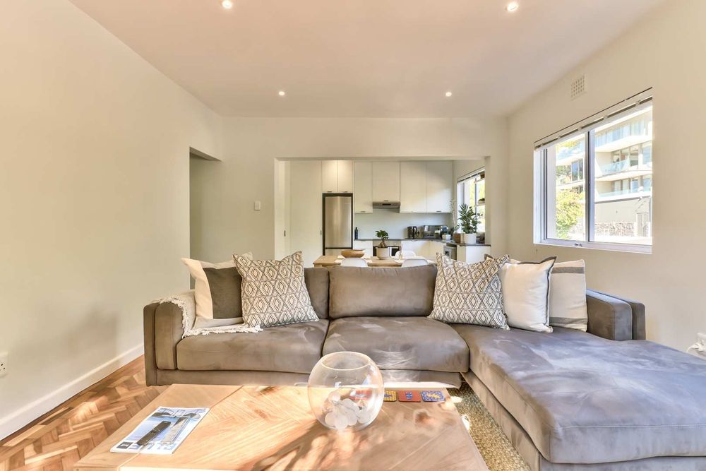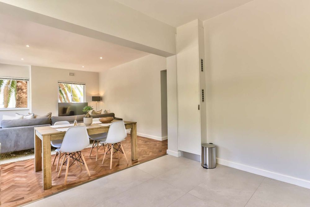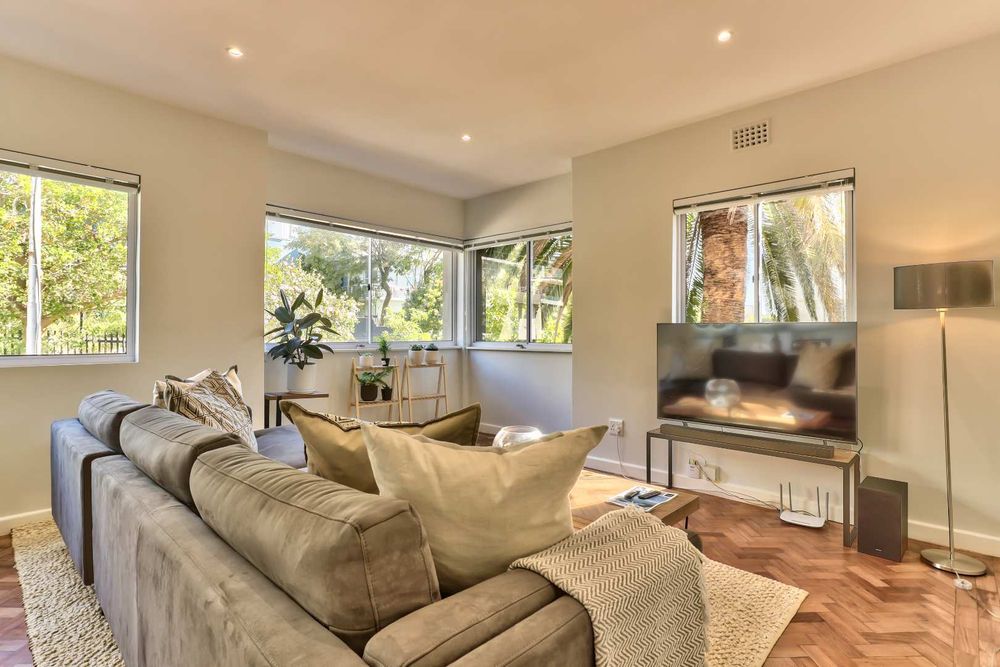 Discover this hidden gem. A beautiful newly renovated, fully furnished 2-bedroom, 2-bathroom apartment situated on a quaint street in upper Green Point. This apartment combines modern comforts with classic elegance. The restored wooden parquet floors add a touch of timeless beauty to the space, along with stylish new furnishings.