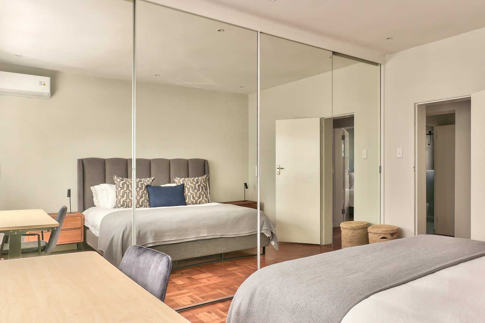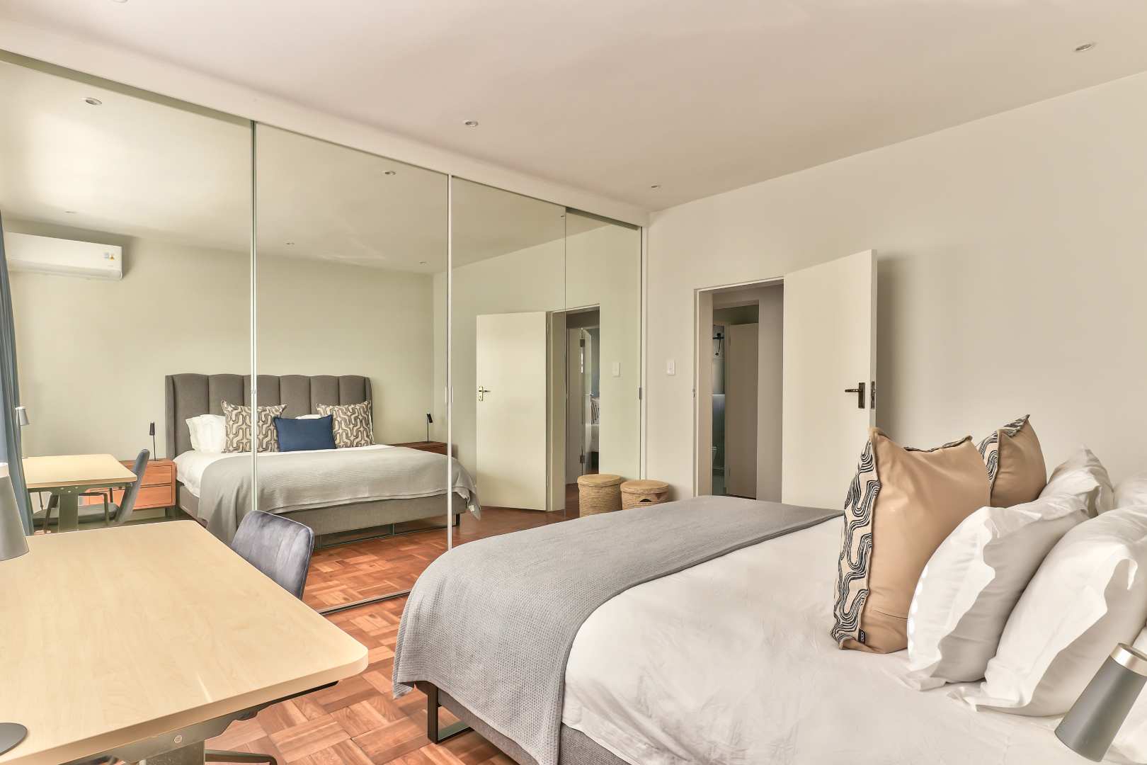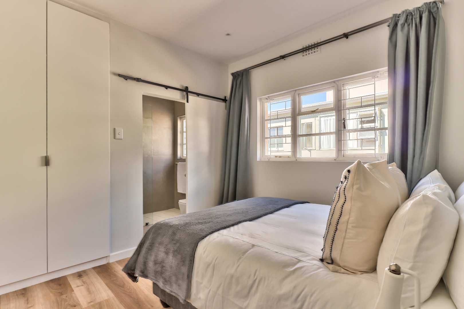 Discover this hidden gem. A beautiful newly renovated, fully furnished 2-bedroom, 2-bathroom apartment situated on a quaint street in upper Green Point. This apartment combines modern comforts with classic elegance. The restored wooden parquet floors add a touch of timeless beauty to the space, along with stylish new furnishings.