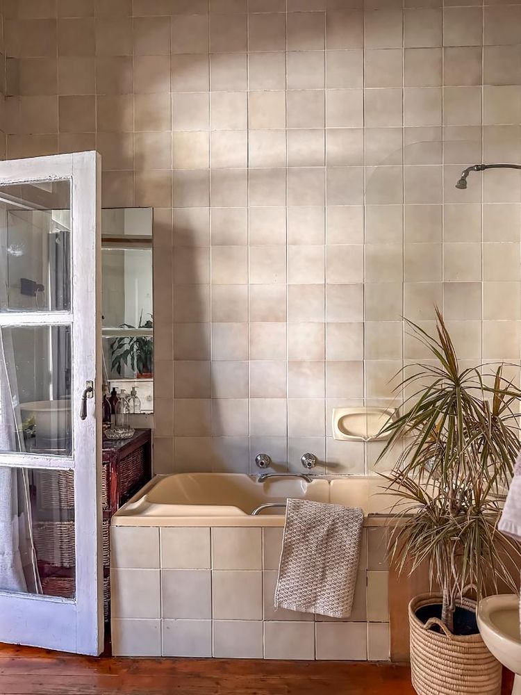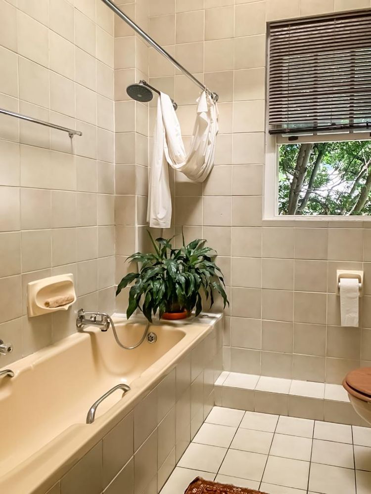 Communal Bathroom – Overlooks a lush green setting, creating a serene ambiance