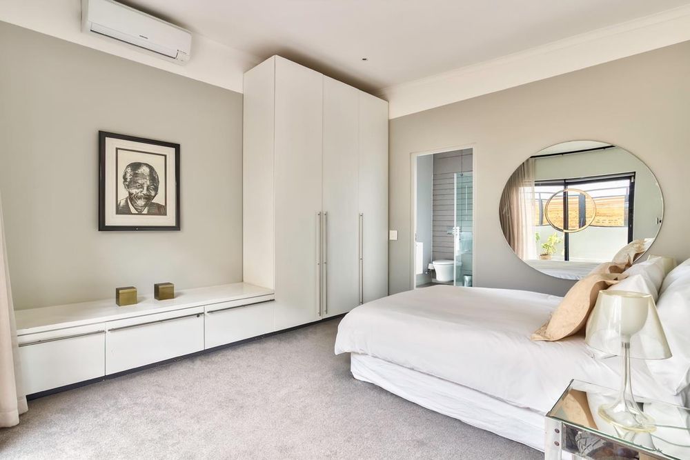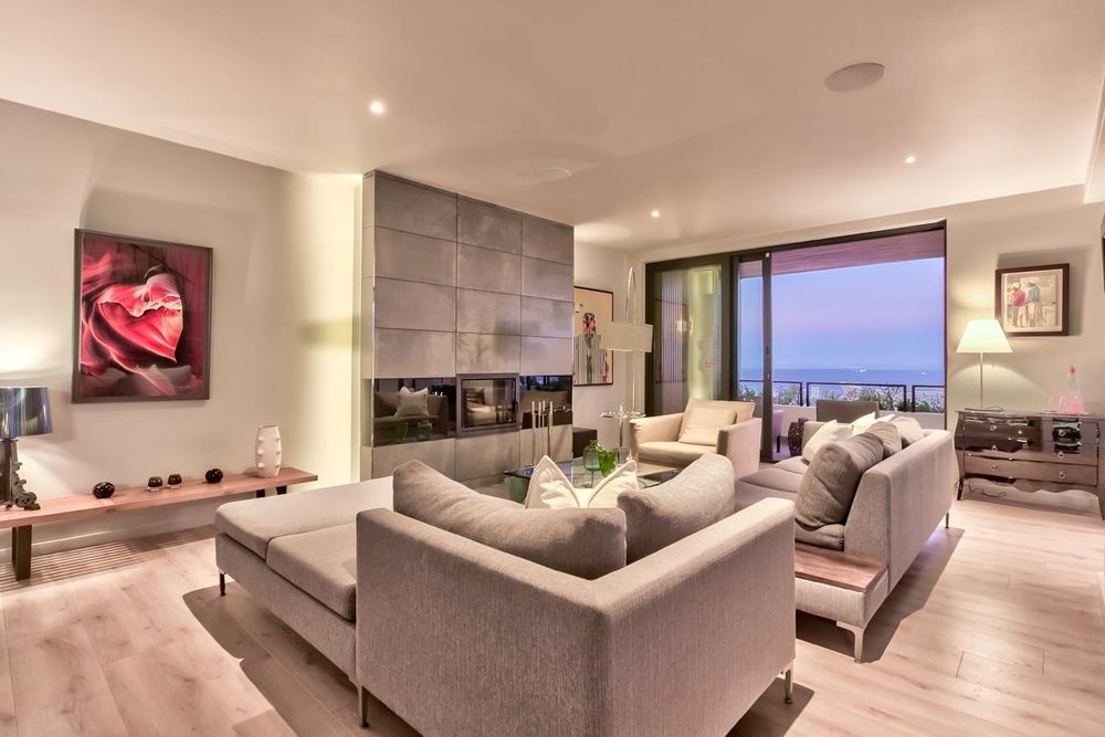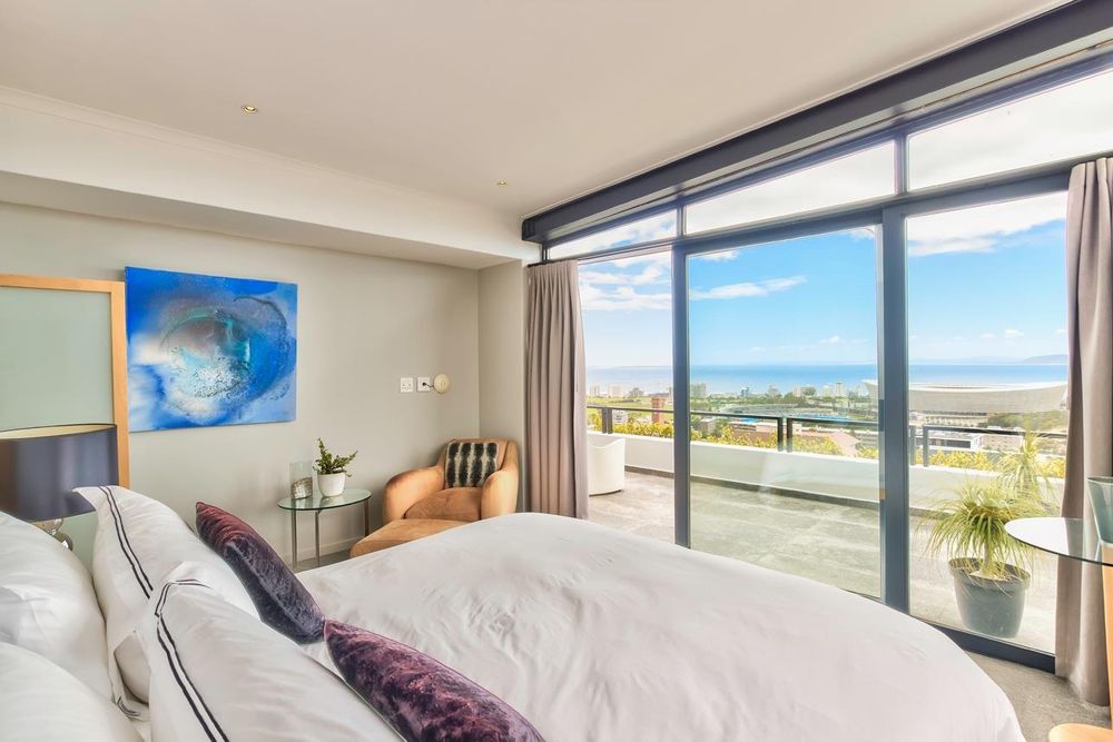 The ground floor is a haven for entertainers, featuring a spacious lounge area complete with a personal bar and an adjacent wine cellar. Seamlessly step onto the expansive terrace, where a 14-seater dining table and sun loungers invite relaxation by the sparkling pool, all while soaking in the stunning views of Table Bay and beyond. The clever use of glass and steel allows natural light to illuminate the space beautifully. Completing this level is your very own cinema room, perfect for enjoying movie nights with family and friends.