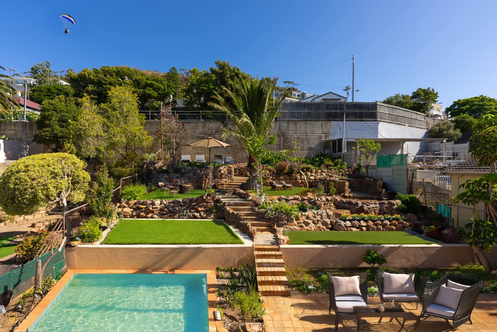 Enjoy the sunny Atlantic climate with a private, low-maintenance garden and outdoor entertaining area: with the option to create swimming pool and lawn, size and shape of choice (see rendering).