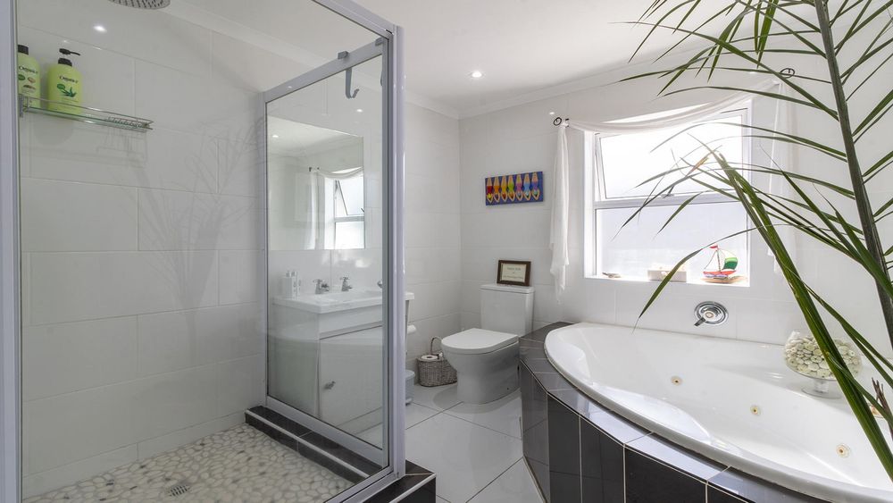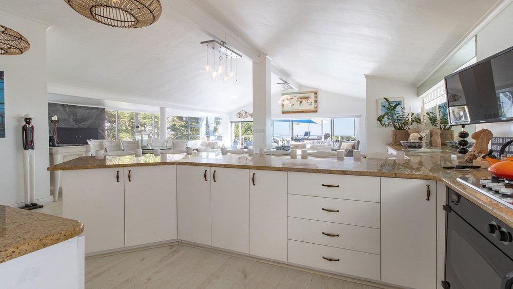 One of the standout features of this home is how it embraces the outdoors. Step out onto the generous deck and you’ll find yourself drawn to the sparkling pool and those incredible ocean views. It’s the perfect setting for morning coffees, lazy afternoons, or sunset braais while taking in the beauty of the coastline.