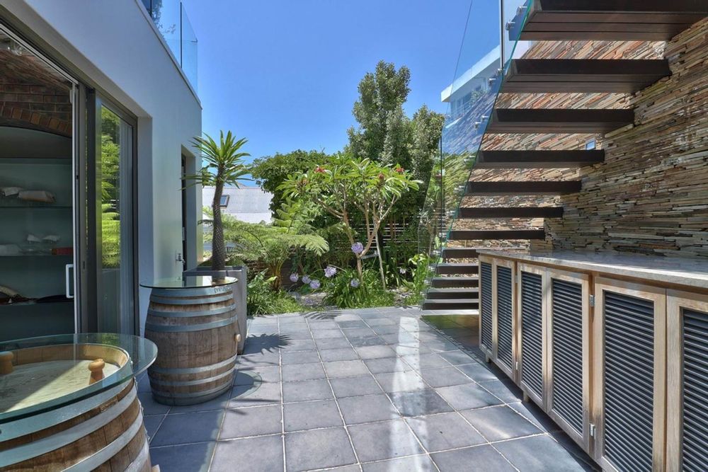 Large wind-protected terraces of over 330 sqm with an infinity ozone-water pool and an award- winning low maintenance indigenous garden complement the interior of the house. Garaging for 6 cars of approx. 145 sqm and additional secure parking for another 4 cars.