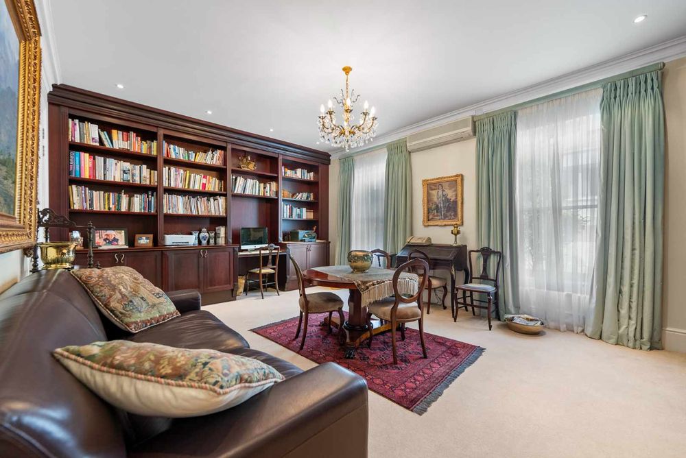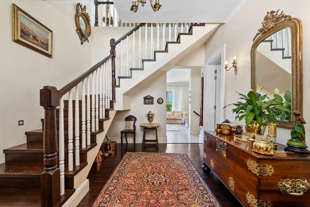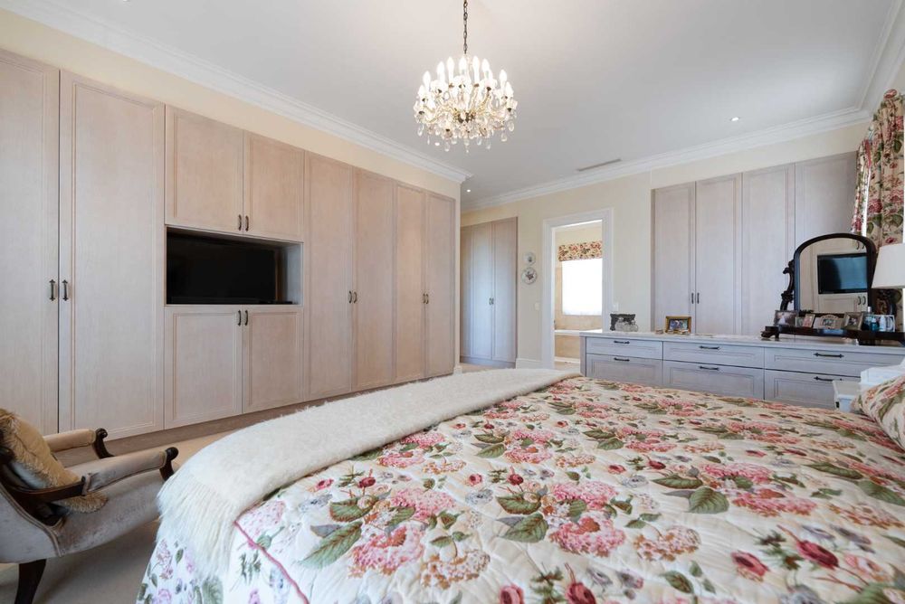 Four en-suite bedrooms offer plenty of space, with a study that can be used as a fifth bedroom. A family room opens onto a low-maintenance garden. The home also includes staff accommodation with a separate entrance, a double garage with direct access, off-street parking, and a separate laundry.