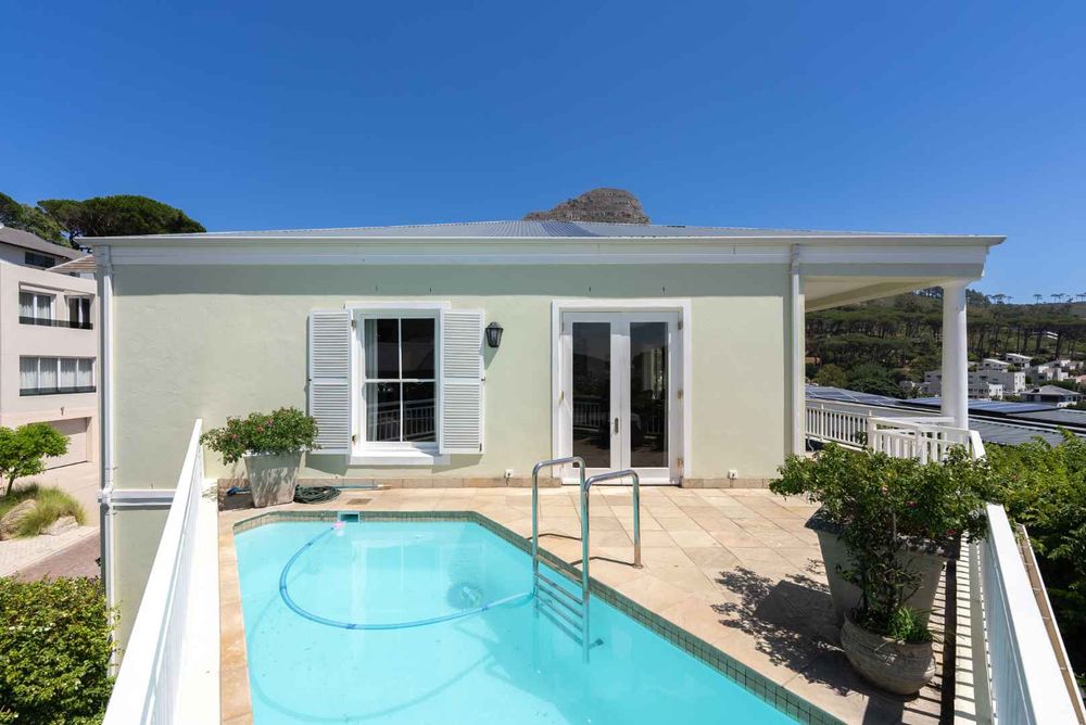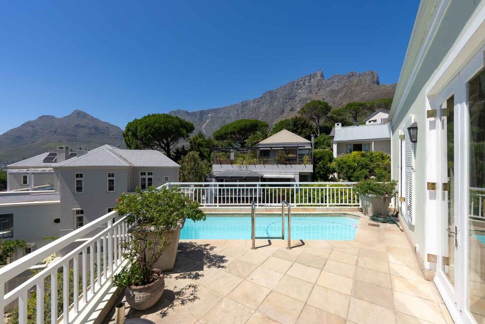 The layout is seamless—an open-plan lounge and dining area lead to a well-appointed kitchen and scullery. A wraparound patio and splash pool create a natural flow between indoor and outdoor spaces, perfect for relaxed living against the city skyline. The garden is a private retreat, with a direct view of Lion’s Head adding to its charm.