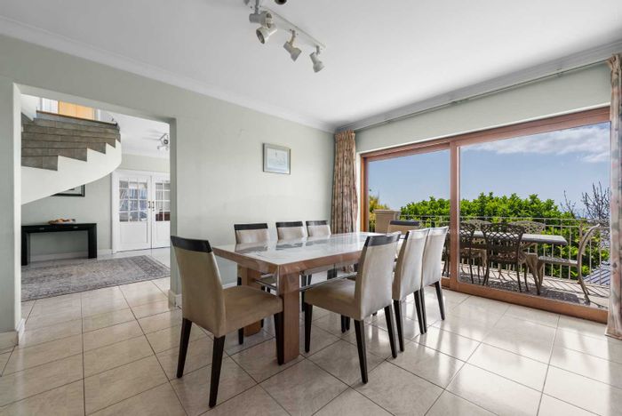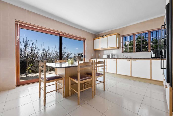 Quiet tree-lined retreat minutes from UCT and highways, with sweeping sea views, gourmet kitchen, private pool, lift and self-contained flatlet — four bedrooms and spa baths.