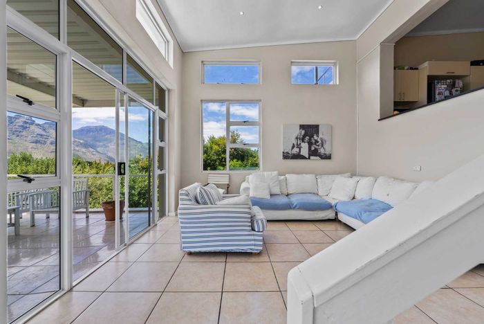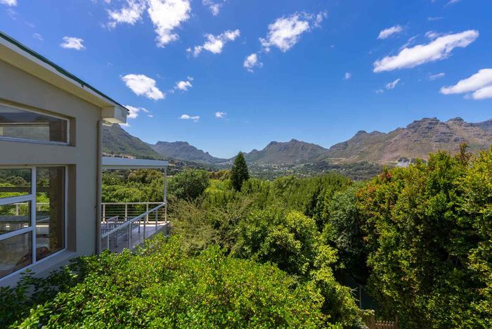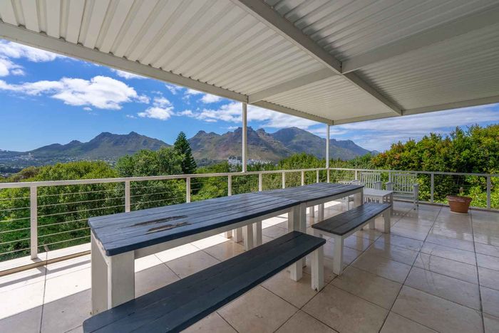 Sunset entertaining and income potential on prestigious Mount Rhodes Drive in Hout Bay, expansive gardens and pool with sweeping mountain and sea views; includes eight bedrooms, nine bathrooms.