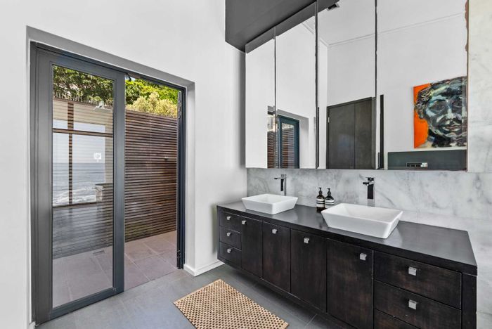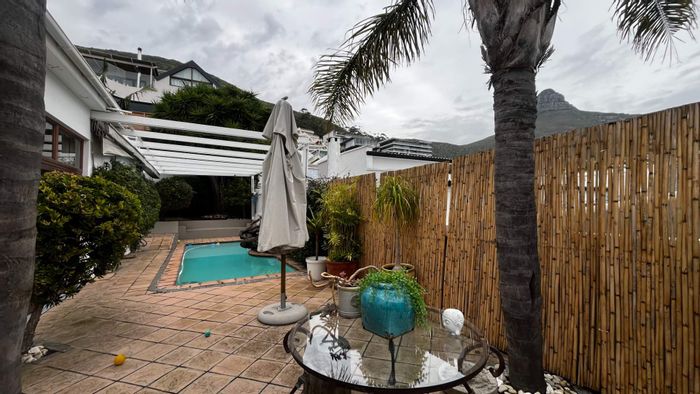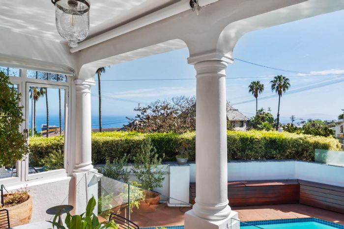 Furnished Bantry Bay retreat with sweeping ocean views, private pool, garden and entertaining patio; walk to Clifton beaches. Two ensuite bedrooms, study and off-street parking for two.