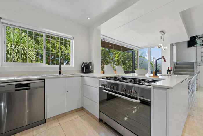 Wind-free Fresnaye retreat with panoramic Atlantic and city views, landscaped garden, smart-furnished interiors, open-plan kitchen with scullery and home office; four en-suite bedrooms, double garage.