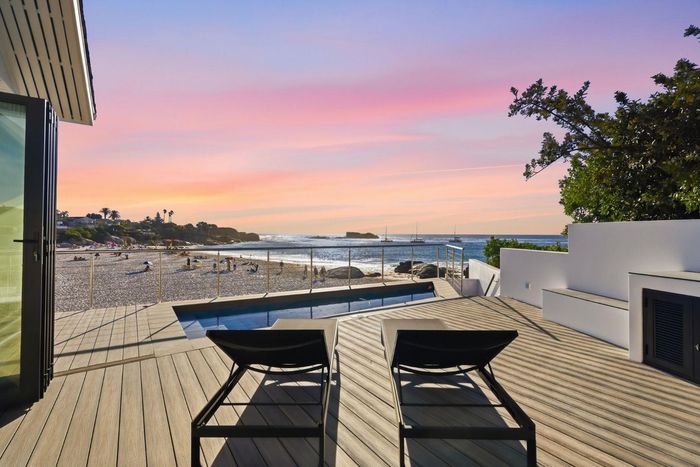 Seamless indoor–outdoor beach living on Clifton’s iconic Fourth Beach with direct access and panoramic ocean views, expansive deck, two pools (including heated) and three ensuite bedroom suites.