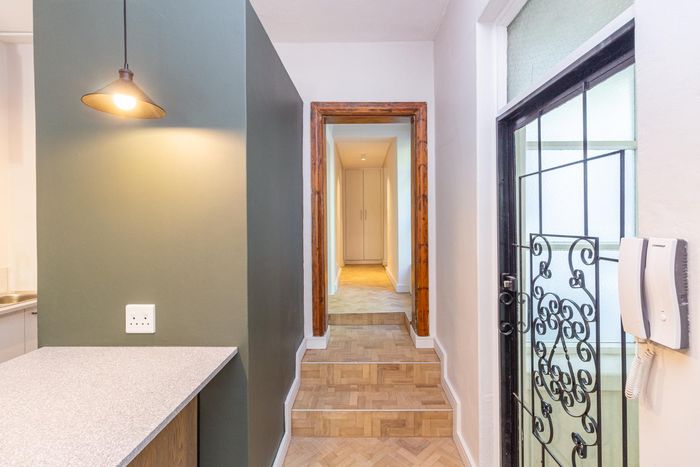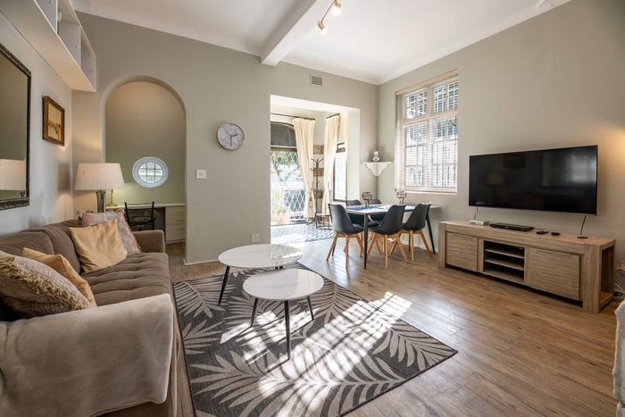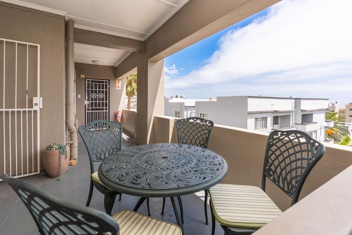 Coastal city living steps from Sea Point promenade, cafes and shops—spectacular sea views from a private doorstep seating area. Pet-friendly furnished 2-bed, 2-bath with one parking bay.