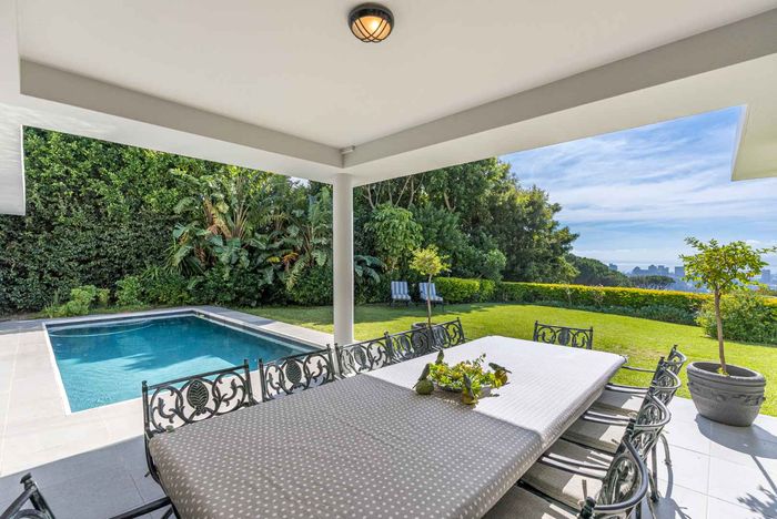 Tranquil Higgovale home features light-filled spaces, pool, four bedrooms, security shutters, and double garage; available for viewing by appointment.