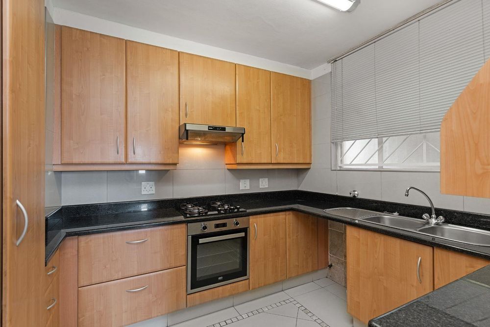The kitchen is fitted with sleek built-in cupboards, an under-counter oven, and an extractor fan, making it both practical and contemporary.