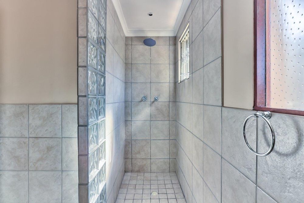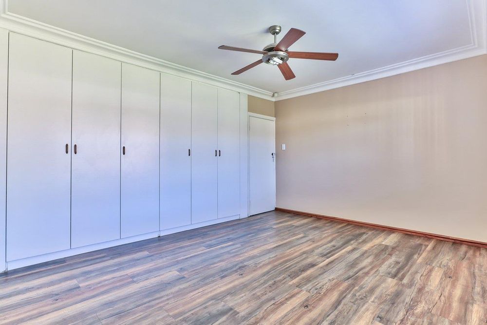 The passage leads to 3 spacious bedrooms with quality laminated floors and built-in cupboards. Spacious family bathroom with shower and bath and a guest toilet with hand basin.