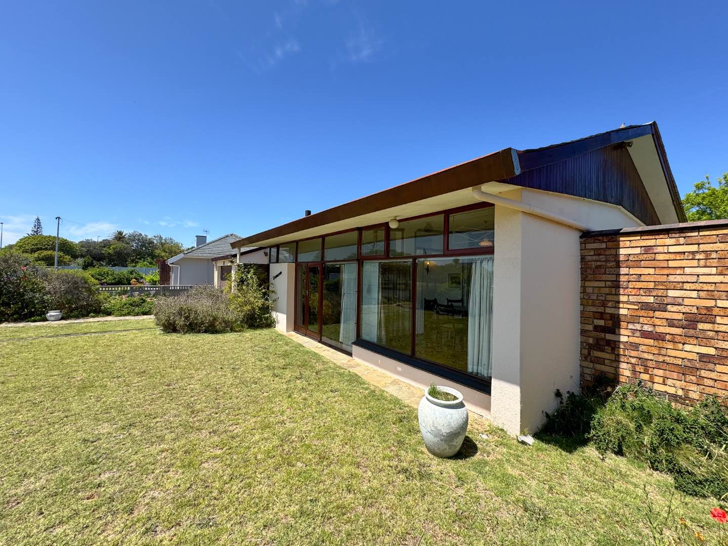 Nestled on an expansive, north-facing lot, this charming 1960s-era home transports you to a time of classic style and simplicity. With its iconic retro design, the house is filled with nostalgic charm: large, airy windows flood the rooms with natural light, and original mid-century features like natural stone walls and wooden clad walls, as well as a unique colour palette, define the interiors. The layout offers a perfect foundation for a modern makeover, yet it is wonderfully livable just as it is—ideal for those who appreciate the elegance of vintage touches.