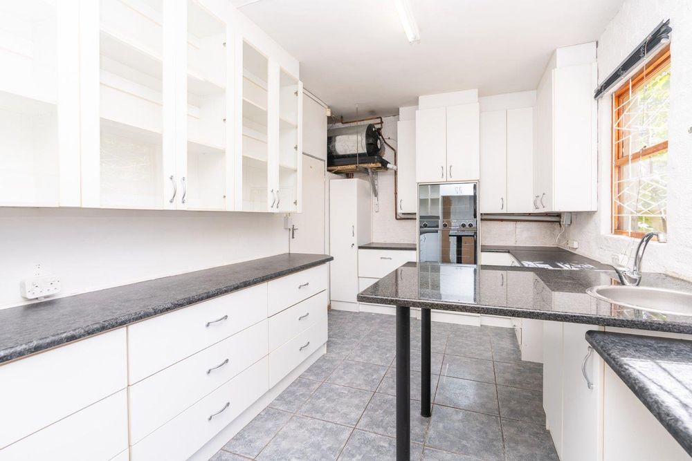 Downstairs: Lounge, dining room, TV room/office, 2 x kitchens (previous owner was a baker and worked from home), guest toilet, domestic quarters and garages for 3 cars. Upstairs: Four spacious bedrooms with built-in-cupboards. Two full bathrooms (main en-suite and family).