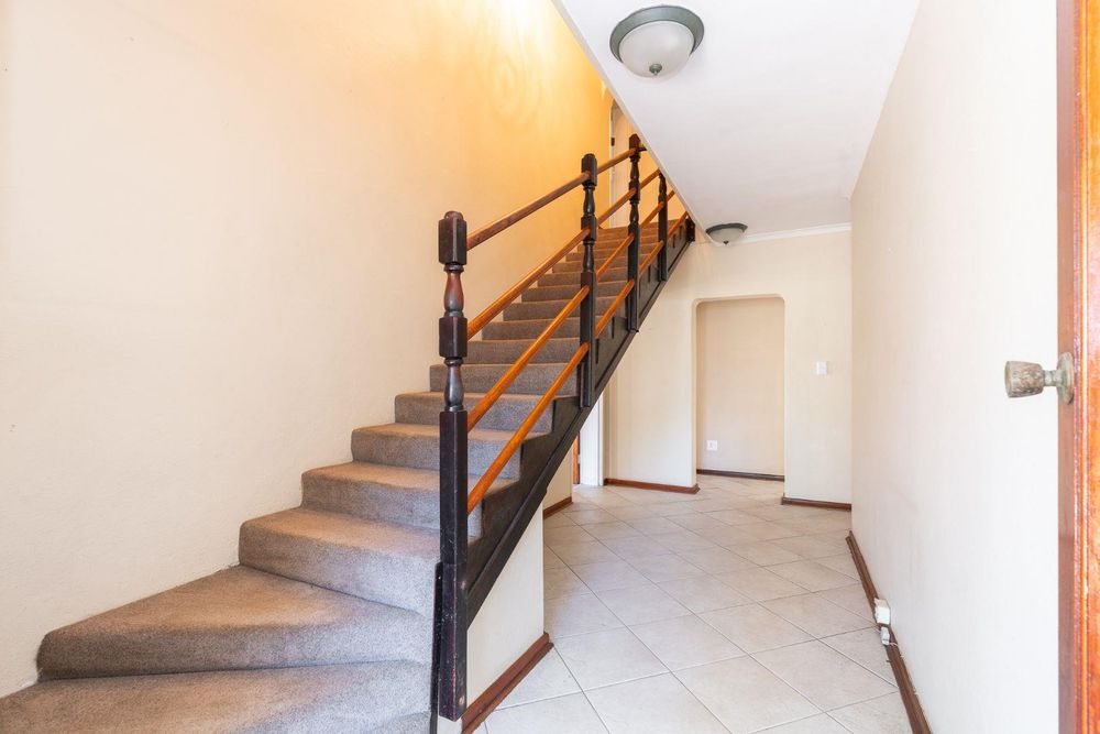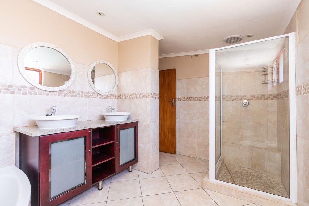 Downstairs: Lounge (carpeted), dining room, TV room/office, 2 x kitchens, guest toilet, domestic quarters and garages for 3 cars. Upstairs: Four spacious bedrooms with built-in-cupboards (carpeted). Two full bathrooms (main en-suite and family).