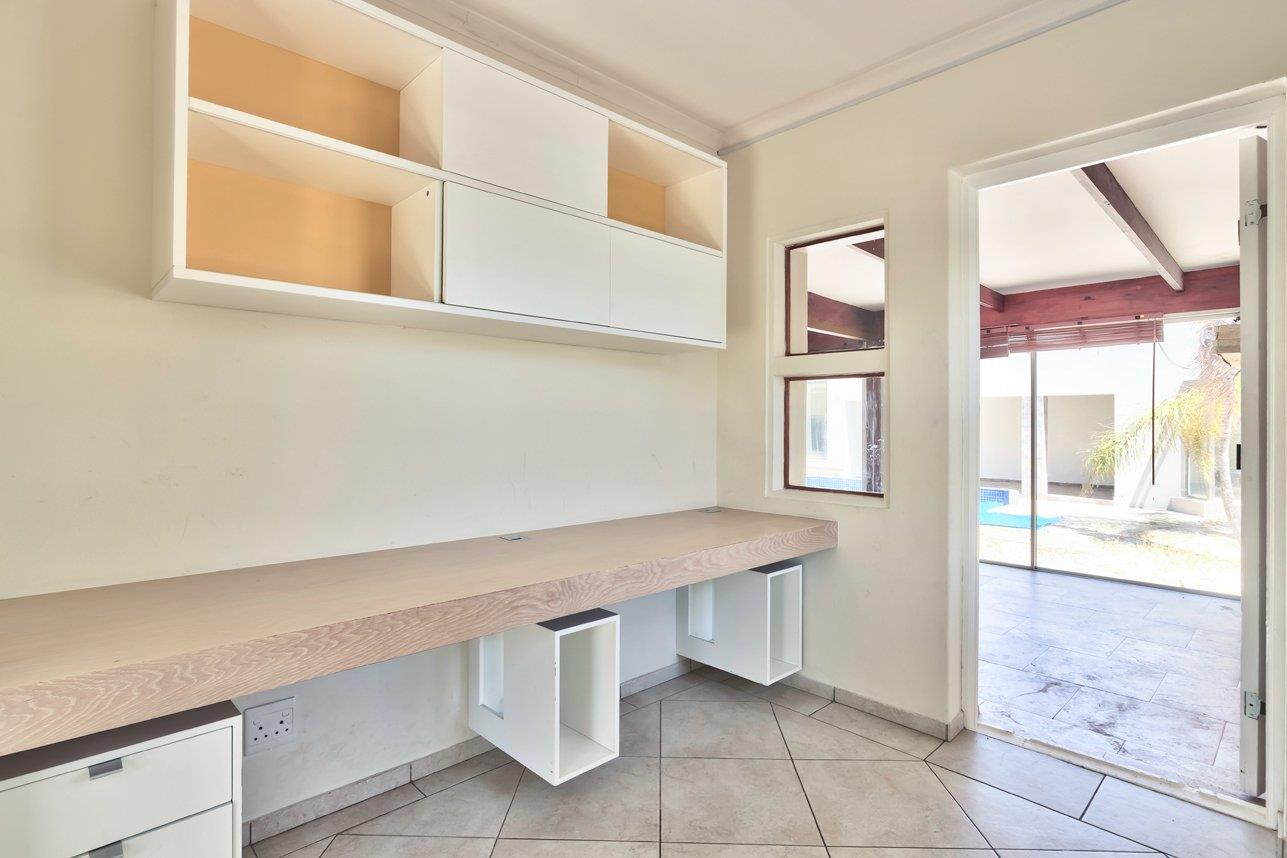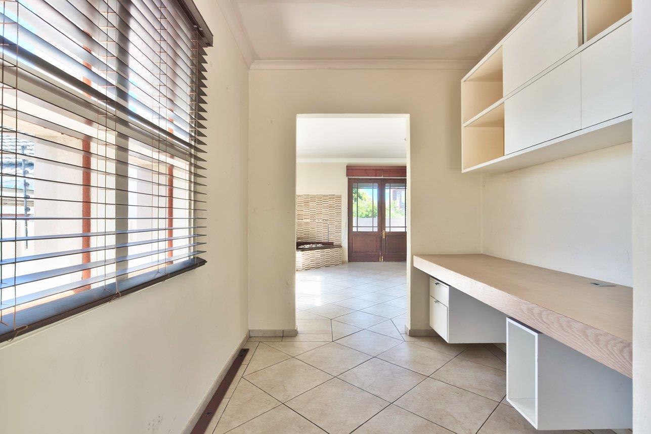 Tucked away in a quiet Crescent with a Gym Park and a Kiddies Park, this Home is spacious, tiled throughout with large open plan kitchen, scullery area. A small office and enclosed braai area, guest toilet and double garage.