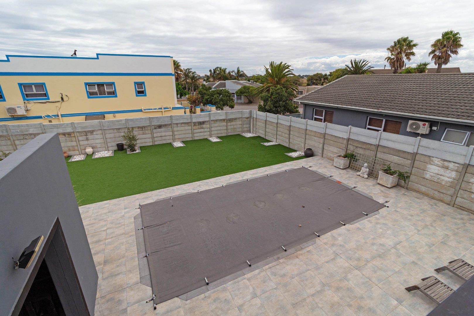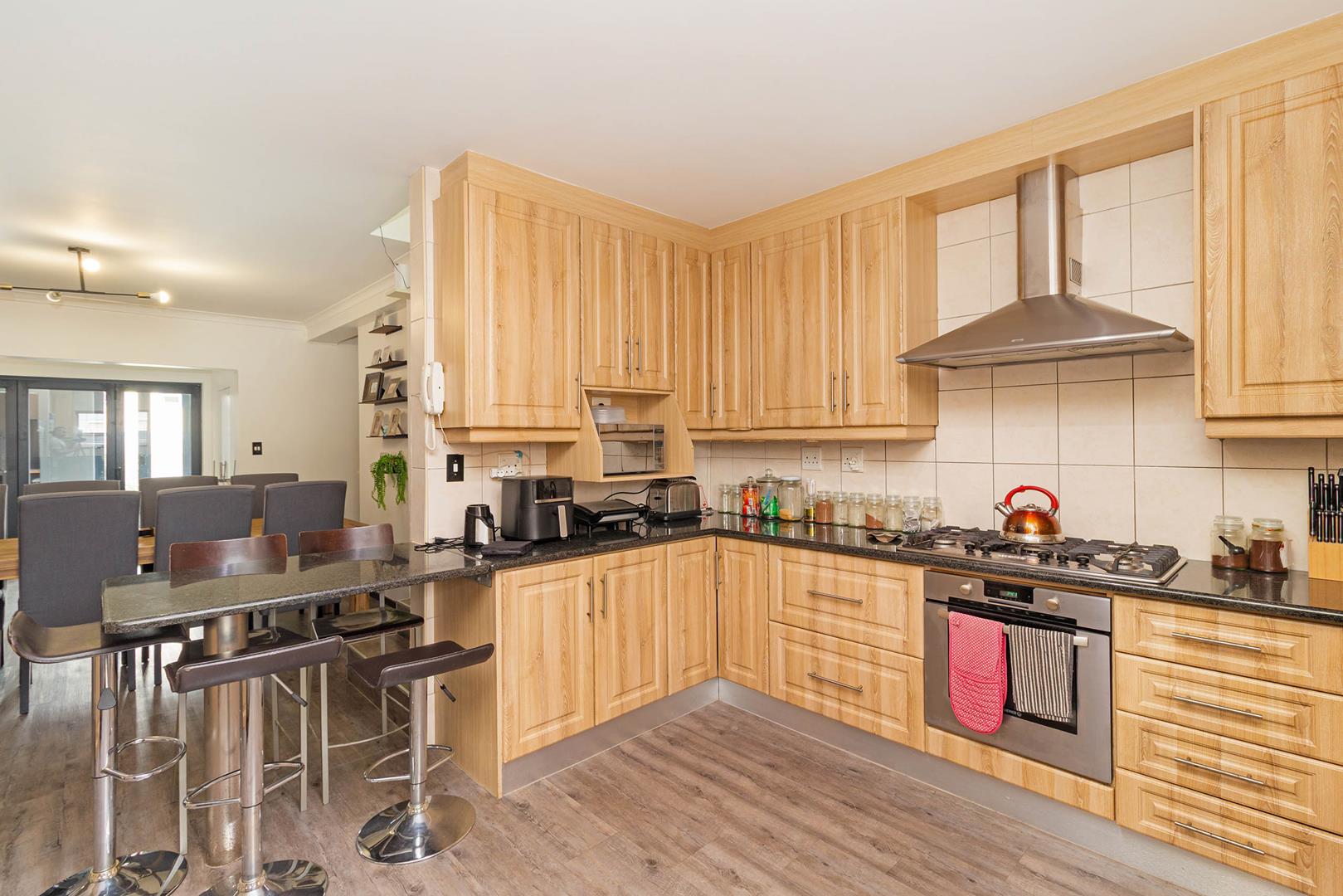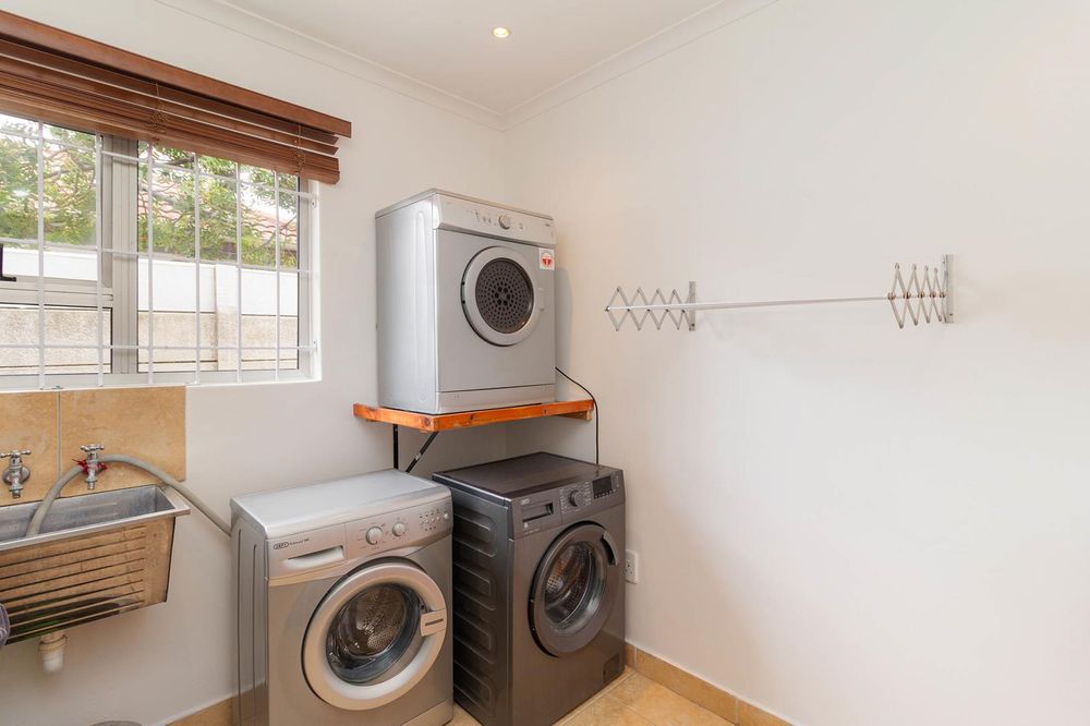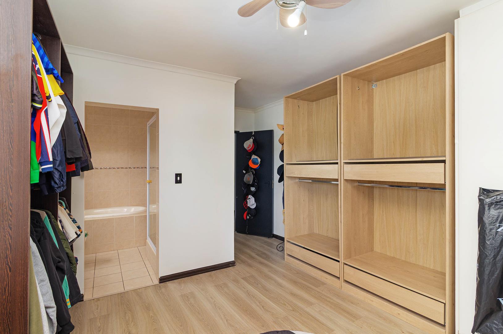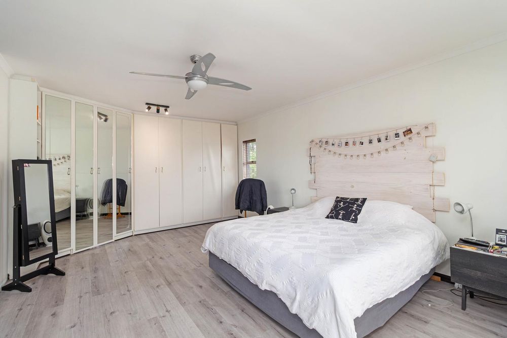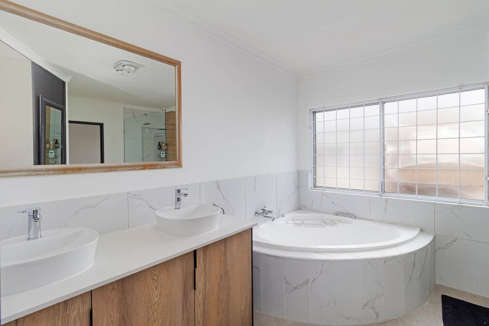Downstairs: Kitchen with additional pantry cupboard, lounge/dining room, two bedrooms, full family bathroom, separate guest toilet, laundry with bics, entertainment room (presently used as a home gym) leading out to covered braai area, pool and large garage with workshop (direct access to property). Additional secure parking for 2 cars. Upstairs: Pajama lounge with braai leading to balcony overlooking the pool and manageable grounds. Two bedrooms (both with full ensuites). Extra’s include 8 solar panels/inverter for the house and separate solar for the pool. Entrance gate to the property can be opened via remote and app. Geyser has an automated timer. Outside beams, cameras, alarm and burglar bars for security.