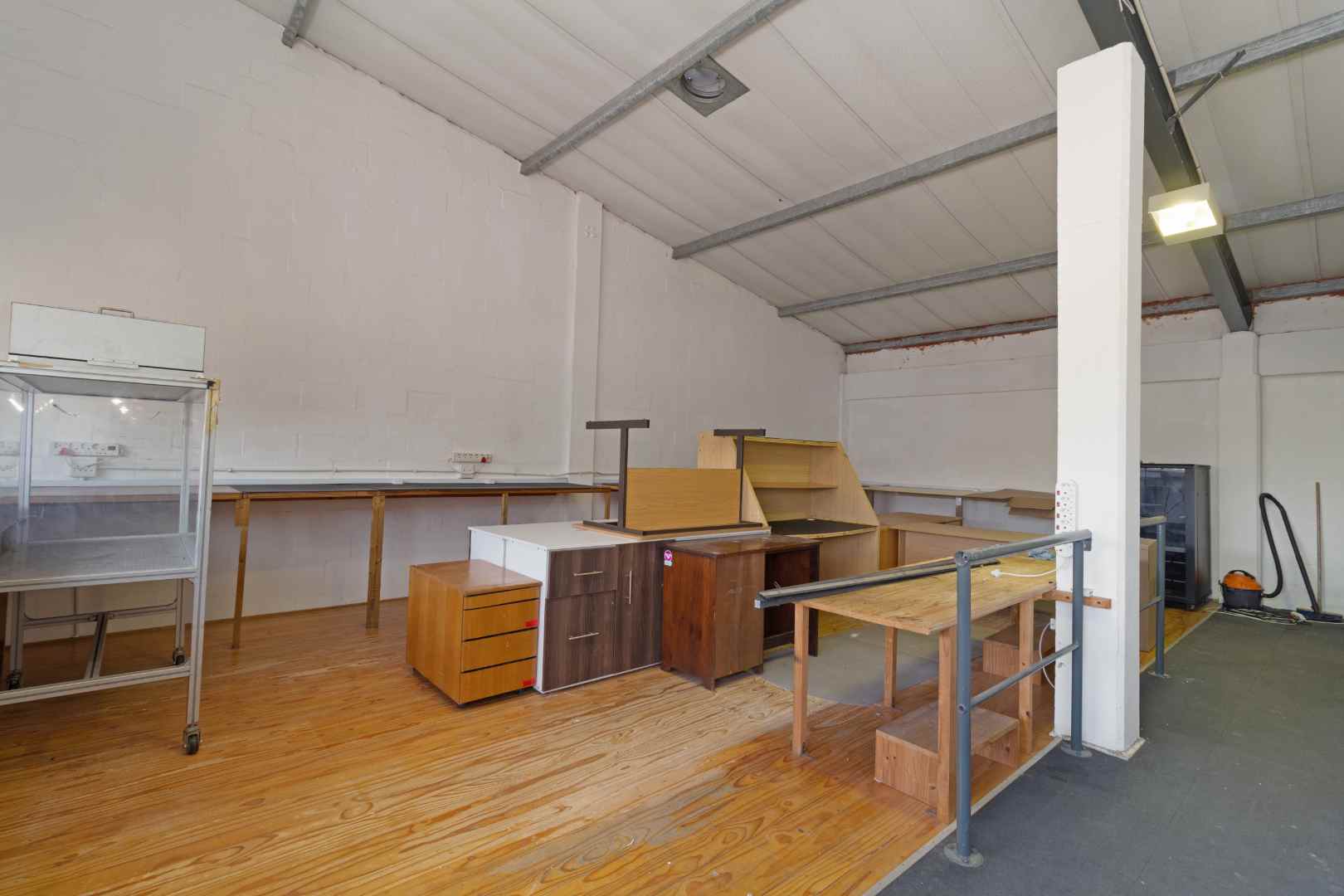 Upstairs is open plan and ideal for a workshop.