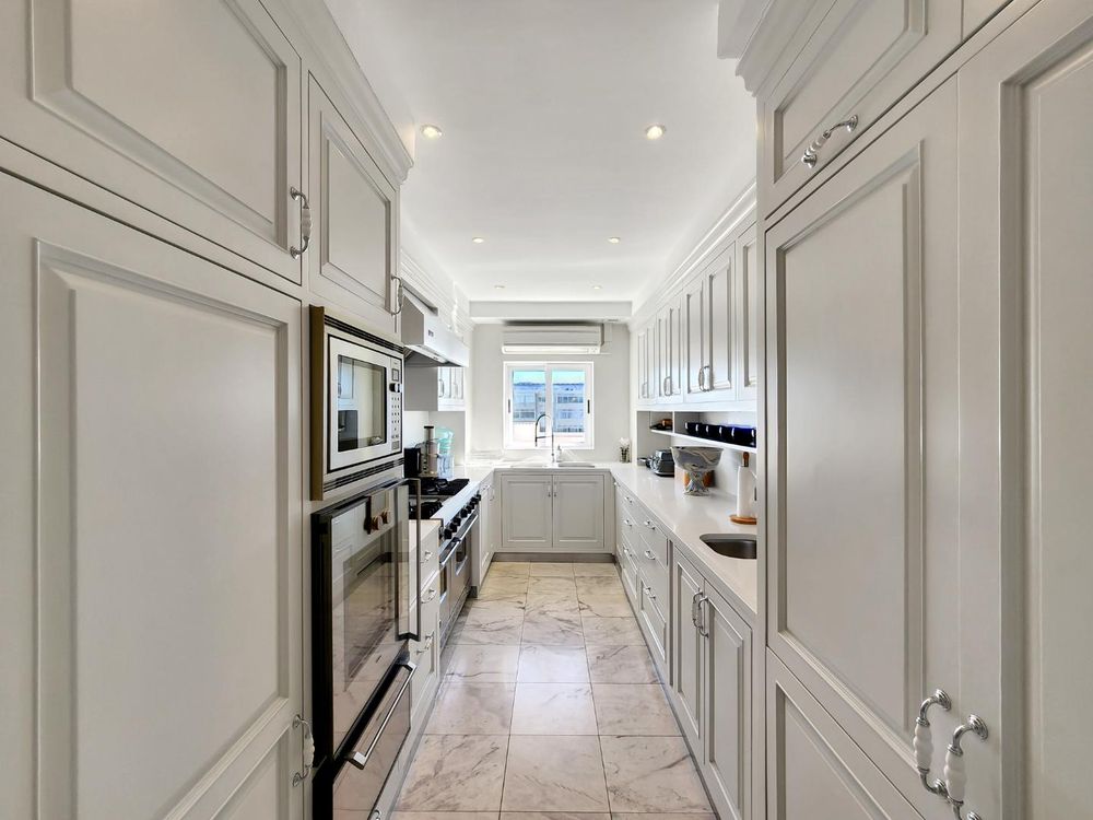 Elegantly RENOVATED to the highest standard, this apartment requires no further investment. It features specialized high-end finishes and can easily be transformed into a minimalist haven by simply removing wallpaper and painting the walls a neutral color. The neutral flooring includes beautiful white solid oak herringbone floors in common areas and sisal carpeting in bedrooms. Imported Cream coloured marble adorns all bathrooms.