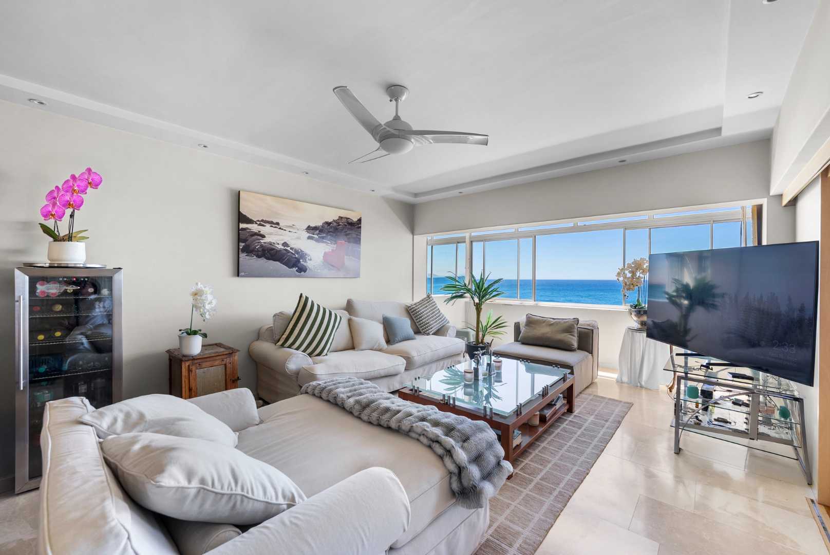 North-facing, the open-plan living area and spacious en-suite main bedroom are perfectly positioned to soak up the sea outlook — with ships gliding past by day and the soothing sound of the ocean at night.