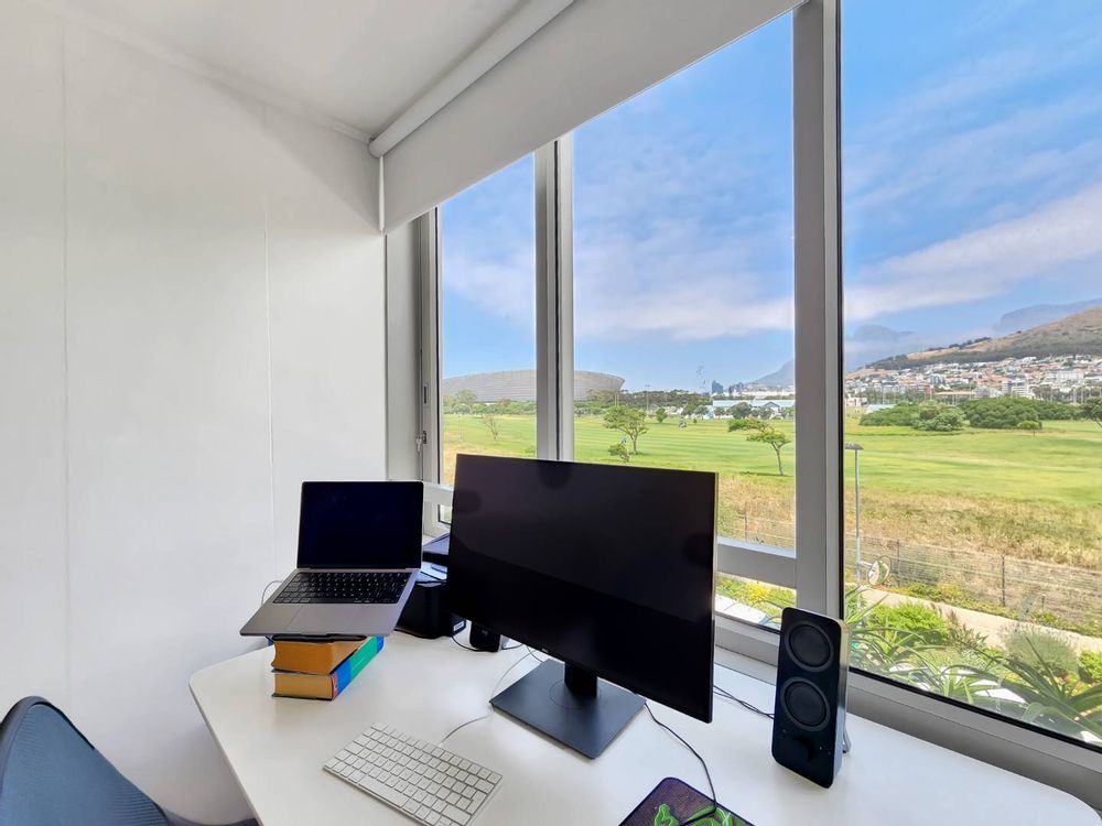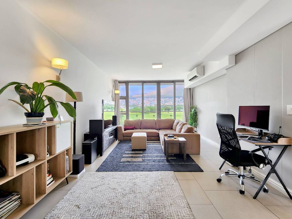 The views are sensational from the living room, bedrooms and balcony with vistas of Signal Hill, The Cape Town Stadium and Golf Course.