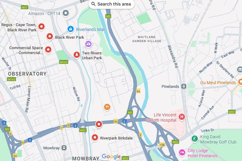 River Park is a prestigious commercial office park located just off the N2 on Liesbeek Parkway in the leafy suburb of Mowbray. Comprising five secure, modern buildings, this well-maintained complex offers professional office space with breathtaking views of Table Mountain and nearby sports fields.