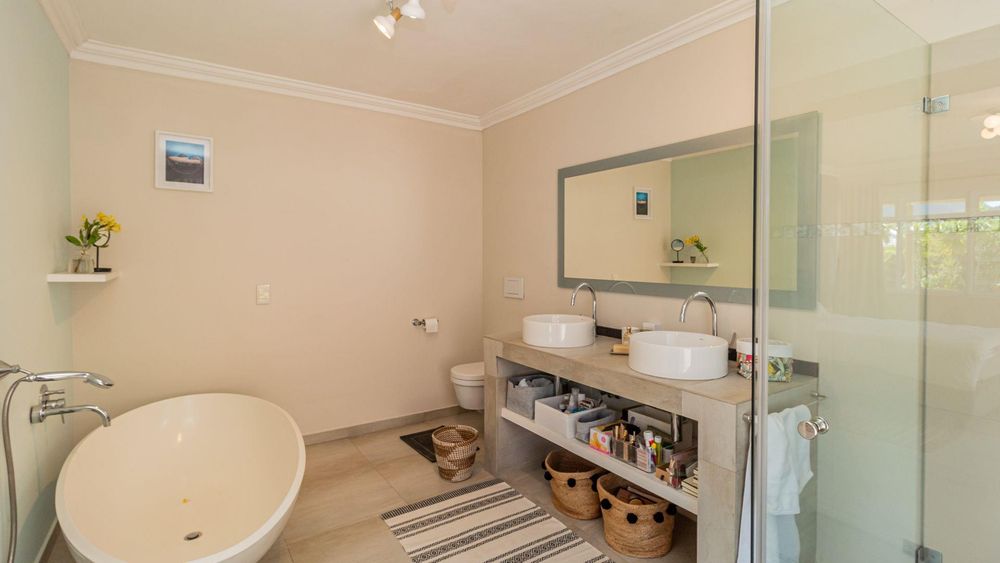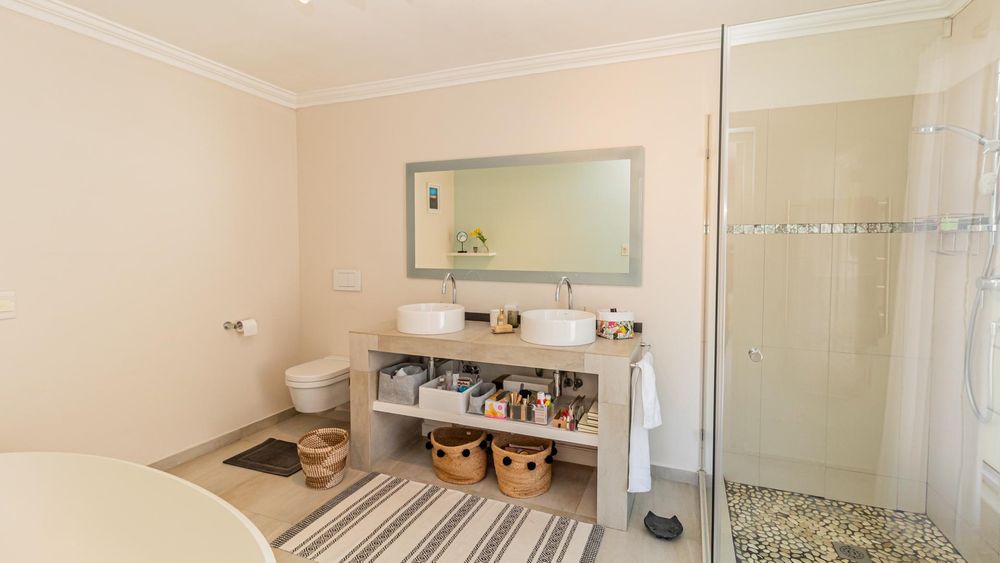 This stunning contemporary family home, spread across two levels, currently offers dual living and impressive rental potential. You can easily revert it to a spacious family residence with multiple indoor and outdoor entertaining areas, or choose to live in one of the "apartments" while renting out the other. The stylish interiors seamlessly flow to a generous garden and splash pool, all bordering a serene nature reserve. Bright, secure, and brimming with possibilities, this home is perfect for a variety of lifestyles.