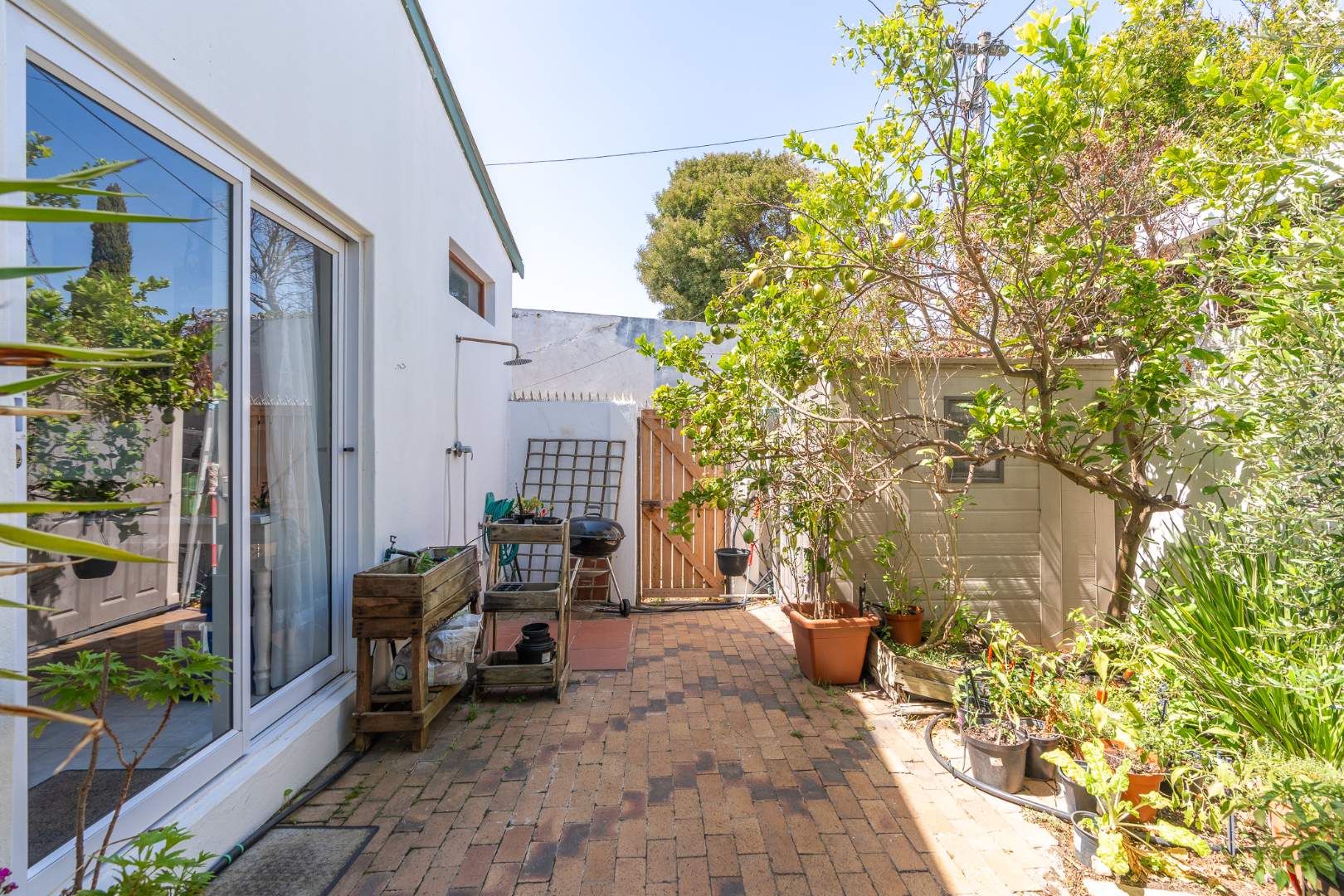 A front stoep is perfect for relaxing, while the back paved garden features a covered seating area and potted greenery, creating a private outdoor space for entertaining and braais. The property also includes secure off-street parking for a small car.