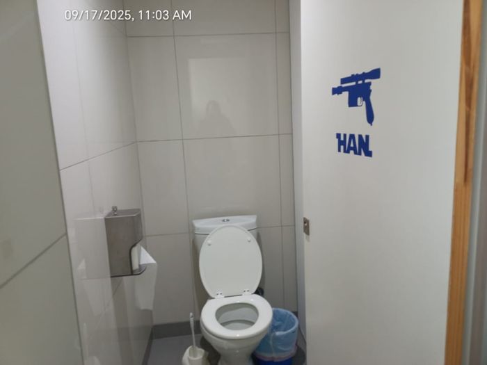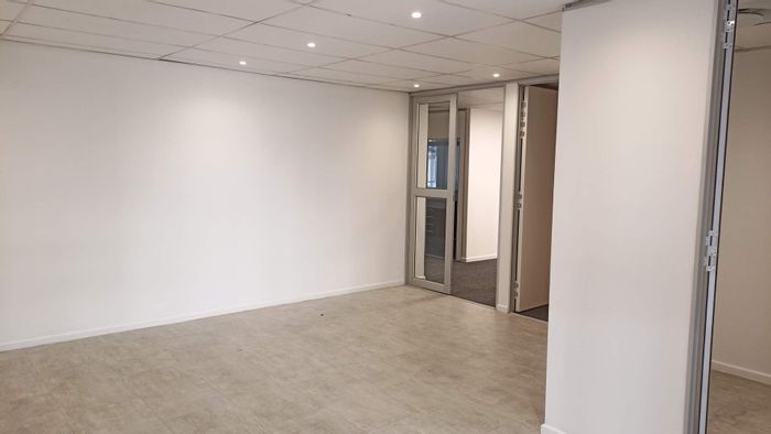 Office space in Rondebosch, 612 m², includes boardroom, private offices, and bathrooms. Secure parking available.