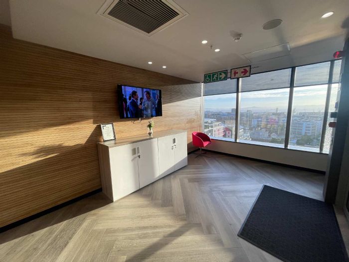 Premium Grade A office in Green Point at Somerset and De Smidt, walking distance to Cape Quarter. Fully fitted with glass-partitioned offices, modern boardroom, private kitchen and balcony.