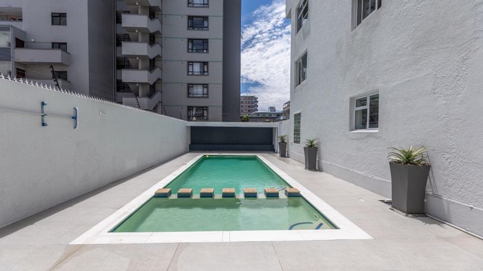 Entertainer's rooftop penthouse with panoramic city and Table Mountain views, private dip pool and grand entertainment room — three bedrooms, four baths, two secure undercover bays.
