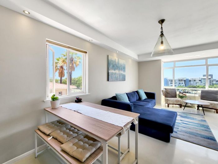 Relax in sunlit Son Vida living minutes from Green Point and De Waterkant dining; corner apartment with wraparound windows, open balcony for sunsets, modern kitchen, two beds, garage.