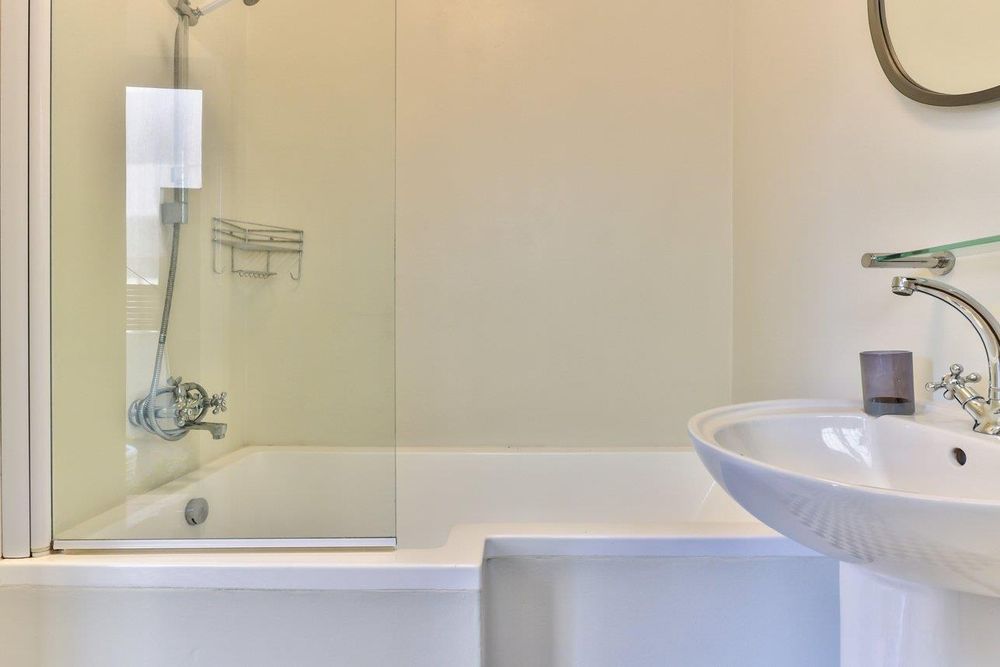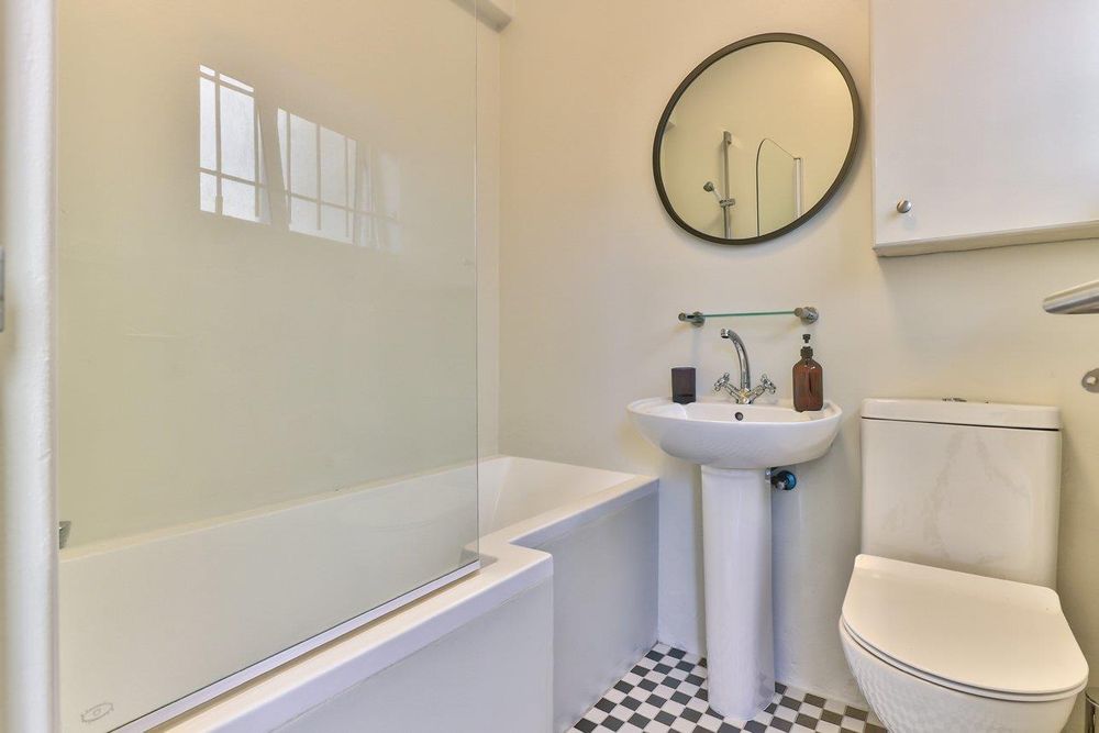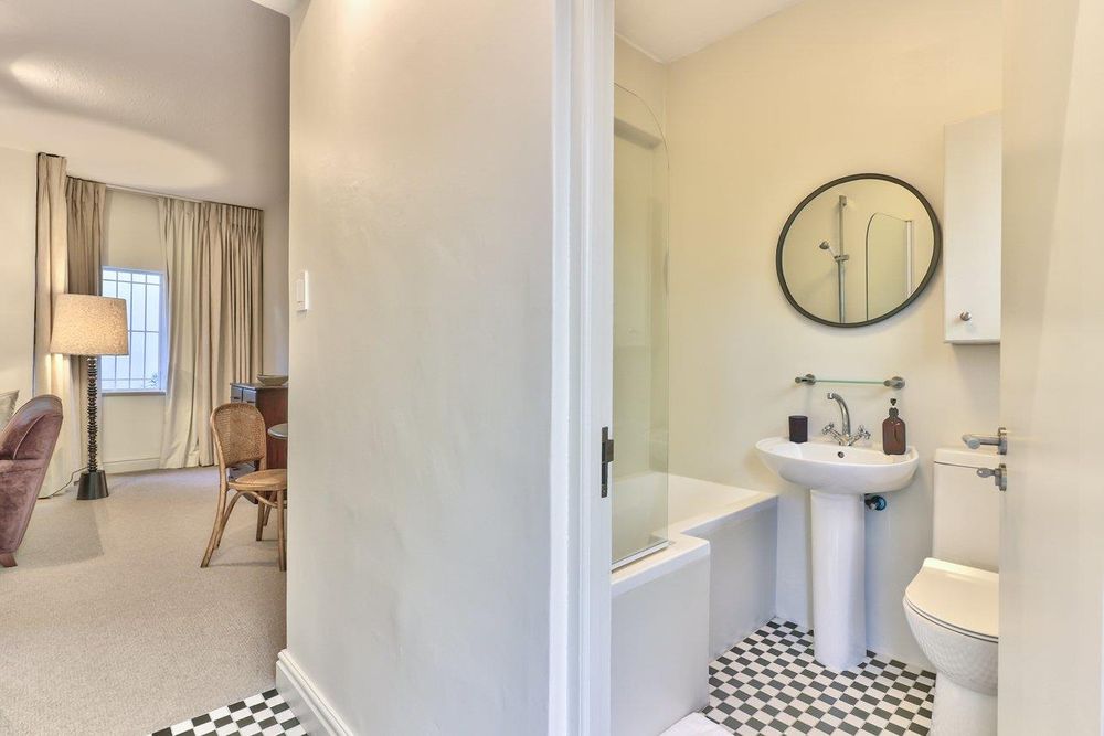 The bathroom with its delightful tiles and classic finishes adds to the charm of the apartment.