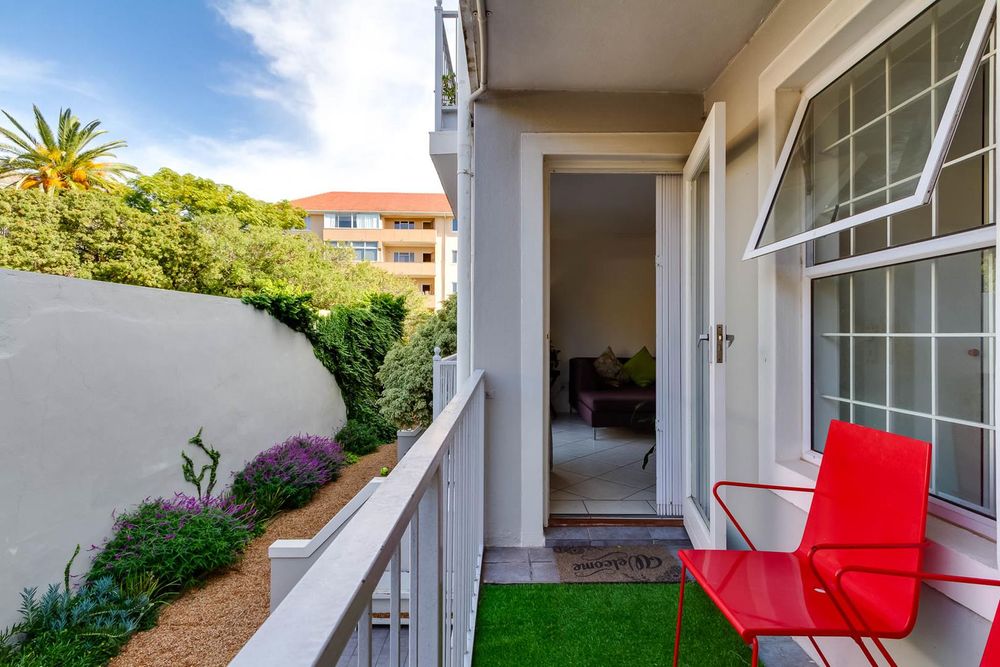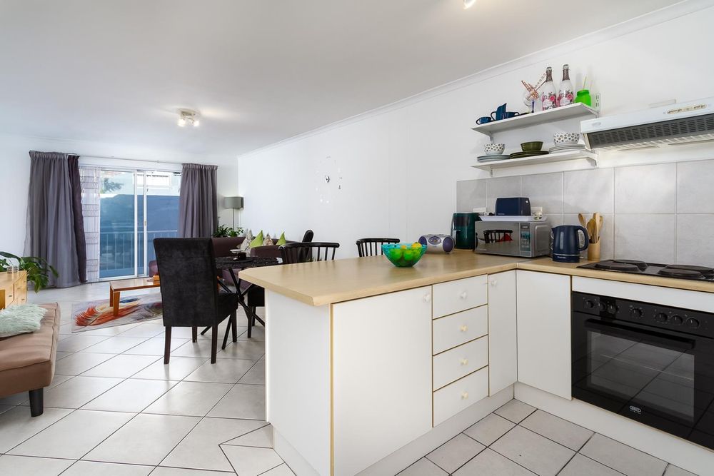 This 77sqm, two bedroom, two bathroom (main en-suite) apartment has an open plan kitchen and lounge with sliding doors which lets in extra light and allows you to enjoy the view of Table Mountain. The lounge then also opens up onto an open balcony with a green outlook and Table Mountain view.
