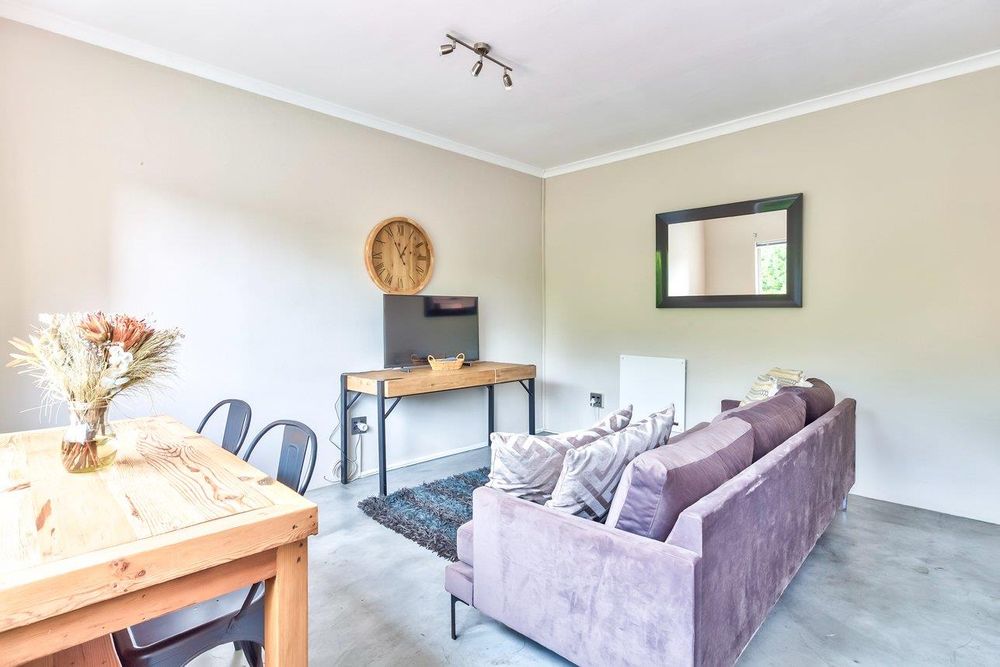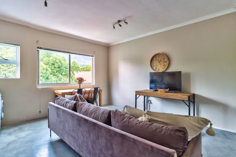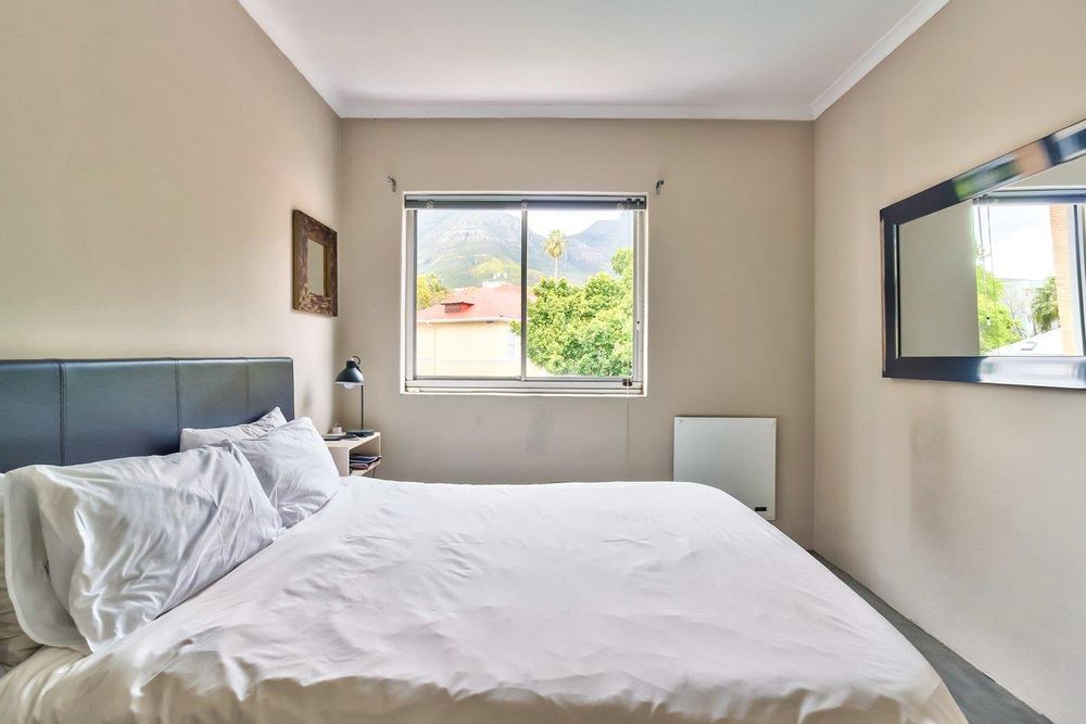 Positioned on the top floor, the apartment enjoys stunning views of Table Mountain, making it a rare find in the City Bowl. Inside, it features a practical open-plan layout with a renovated kitchen fitted with built-in cupboards, an oven, hob and extractor, as well as plumbing for an undercounter washing machine. The living area flows seamlessly from the kitchen, finished with durable screed flooring and a leafy outlook that adds a sense of calm.