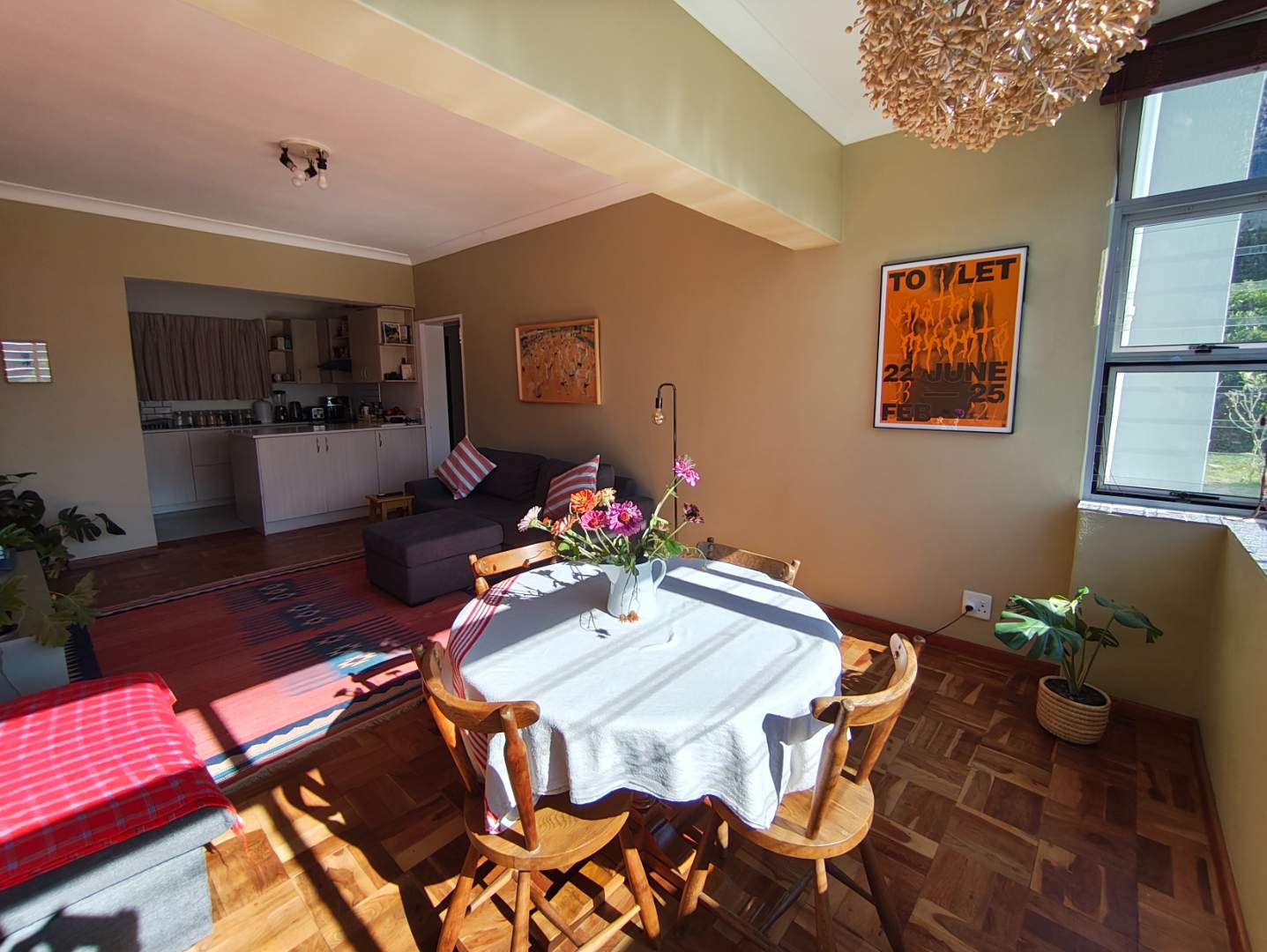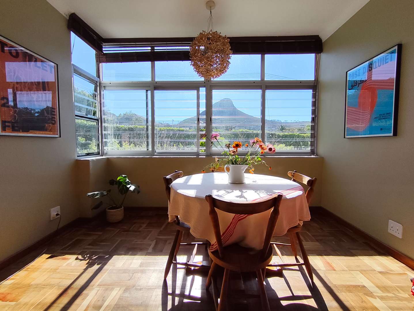 The apartment is on the ground floor of the building and at 67sqm, it is a spacious one. Open plan kitchen into living room. The apartment boasts great afternoon light as well as a great view of Lions Head.