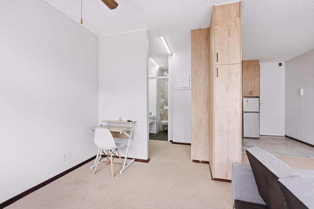 Modern 40m2 semi-furnished studio on the 9th floor with breathtaking mountain views. Contemporary finishes, light-filled open-plan living, quality built-in cupboards, and a sleek bathroom.
