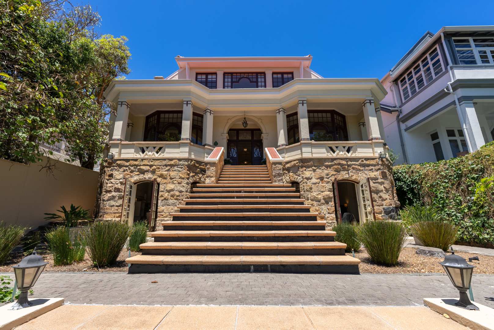 Ombala” which means 'resting place of the king, a magnificent example of Edwardian architecture, a significant landmark position, and home. Built-in the early 1900s, this Edwardian in the original Oranjezicht estate on Belvedere is now a national monument. It runs between 2 of the Avenues, from the front entrance on Belvedere overlooking the reservoir and city to Alexandra linking front and back with endless Table Mountain views.