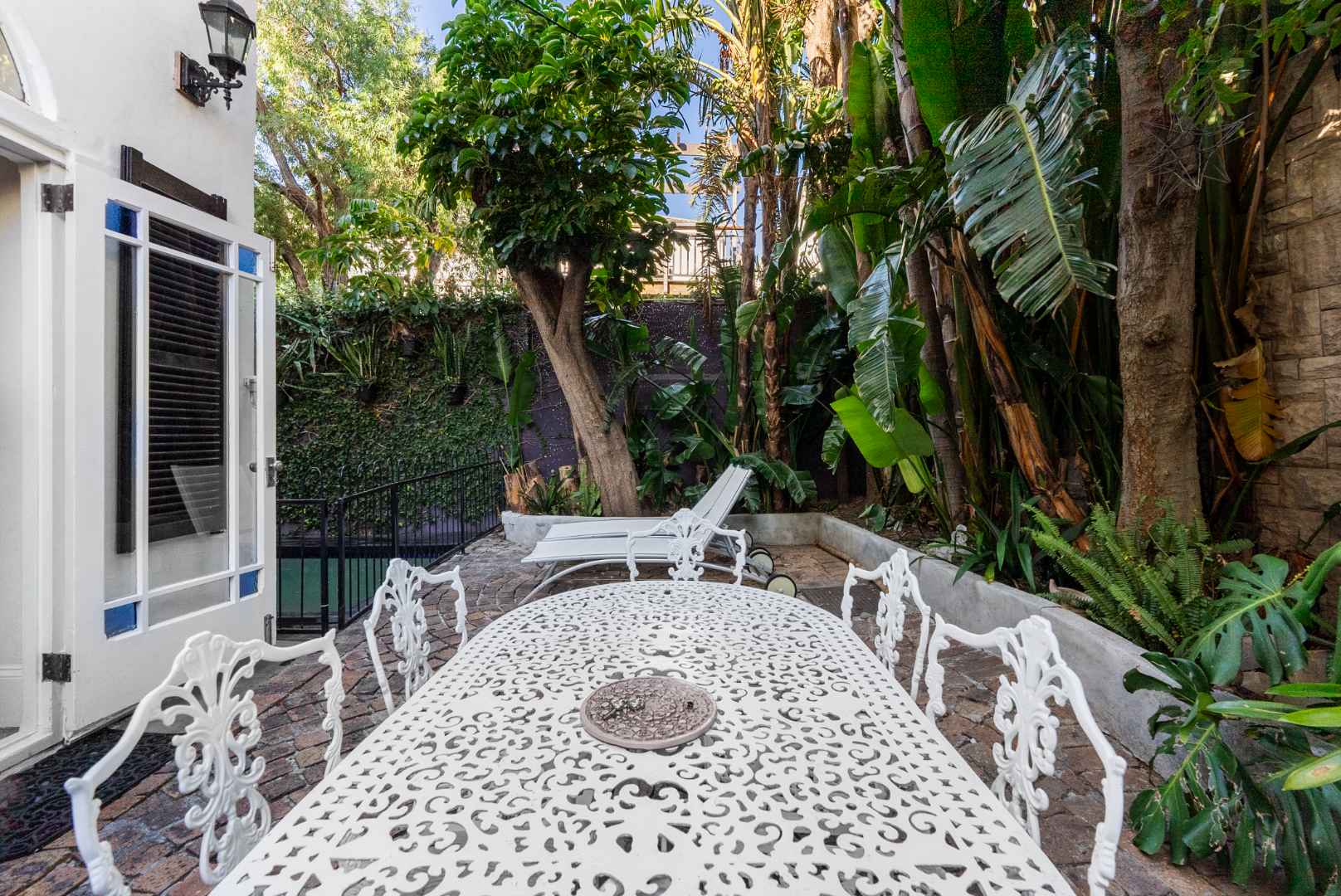 The kitchen is neat but offers scope for an upgrade and opens onto a lovely back courtyard with a covered terrace, perfect for quiet mornings or shaded afternoon gatherings. A separate laundry room, a charming pagoda, and a plunge pool complete the outdoor space.