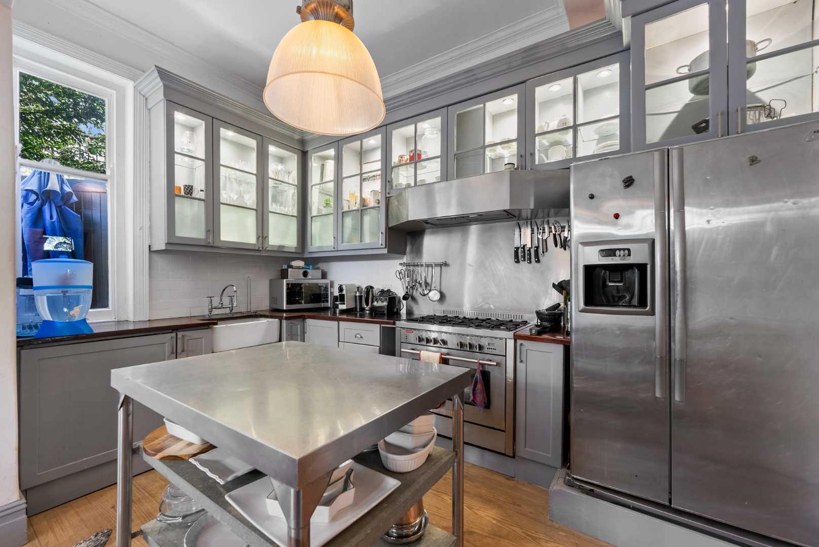 Behind its leafy frontage and decorative ironwork lies a beautifully composed home, high ceilings, tall sash windows, and archways that create a natural flow between three spacious reception rooms. Two feature working fireplaces, adding warmth and atmosphere in the cooler months.