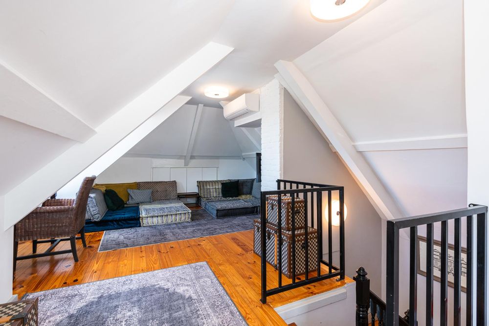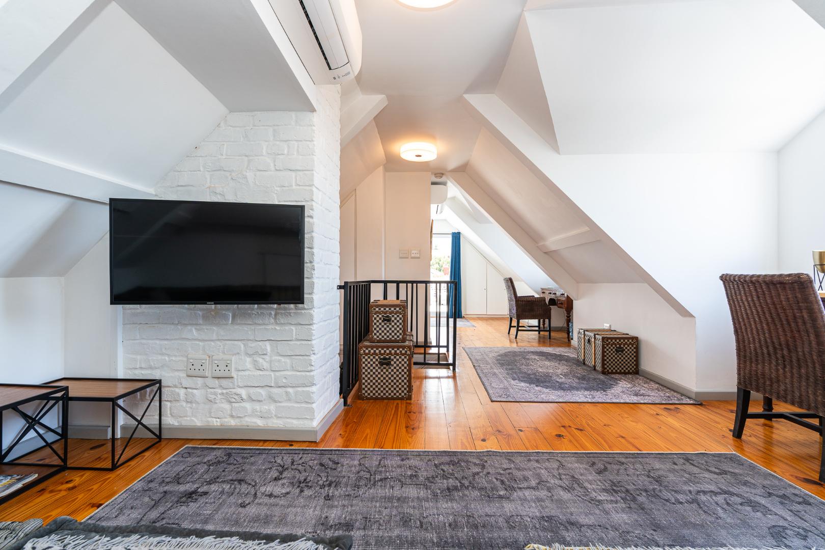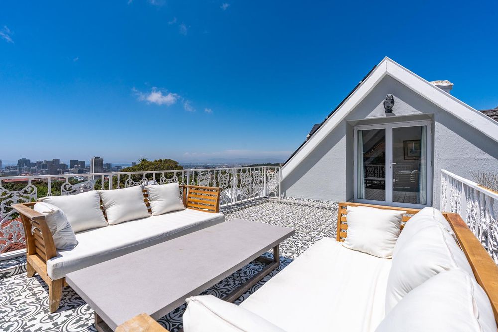 The second floor comprises a large, air-conditioned loft room with bathroom, opening onto a expansive terrace overlooking Table Mountain and the city.