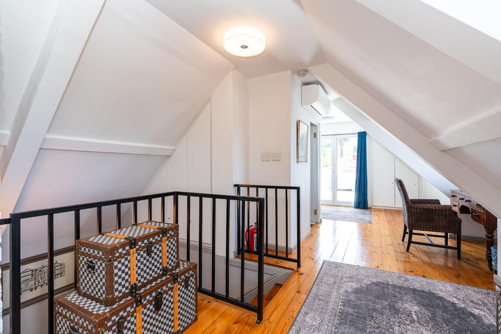 This large, character-filled home blends heritage charm with refined city living, offering Table Mountain and city views, high ceilings, sash windows, original wooden floors and three period fireplaces and multiple outdoor areas.