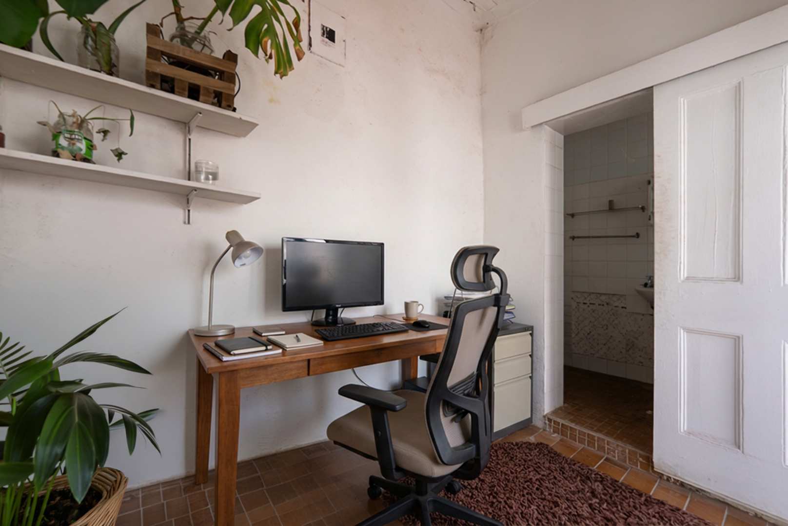 As it stands, it is a 3 bedroom home with a spacious dining area and drawing room with a fireplace. One bathroom, pantry and large kitchen area. Outside room, with bathroom, and a paved courtyard. Parking for 2 cars behind a gate